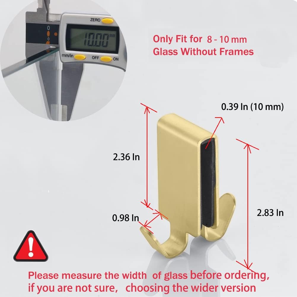 - Suitable over glass wall or glass door thickness 0.31-0.39in (8-10mm),please measure before ordering.If you are not sure of the thickness of glass,please choose the hook with wider version ,thank you