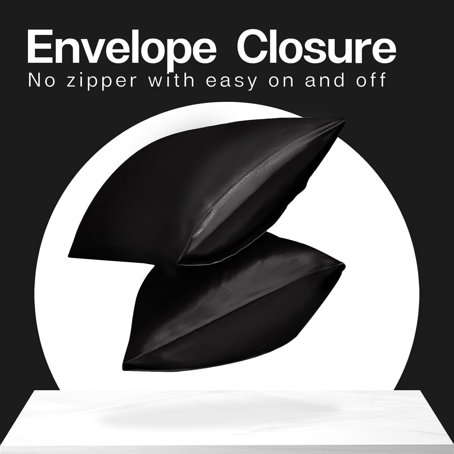 MR&HM Satin Pillowcase for Hair and Skin, Silk Satin Pillowcase 8 Pack, Queen Size Pillow Cases Set of 8, Silky Pillow Cover with Envelope Closure (20x30, Black)