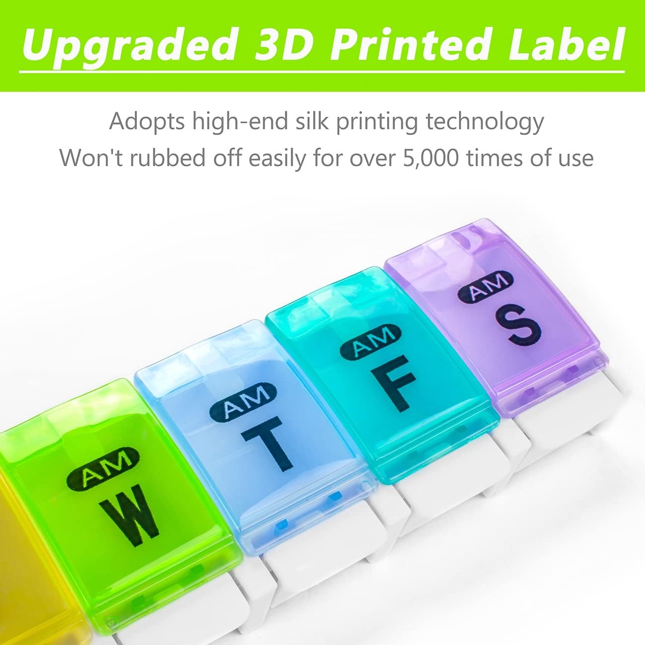 - Easy To Open: Our Extra Large 2 times a day pill box comes with push button design, press gently with your thumb on the front of this large 7 day pill organizer and the lid pops open, arthritis friendly, making it incredibly easy for you to open even with a single hand!