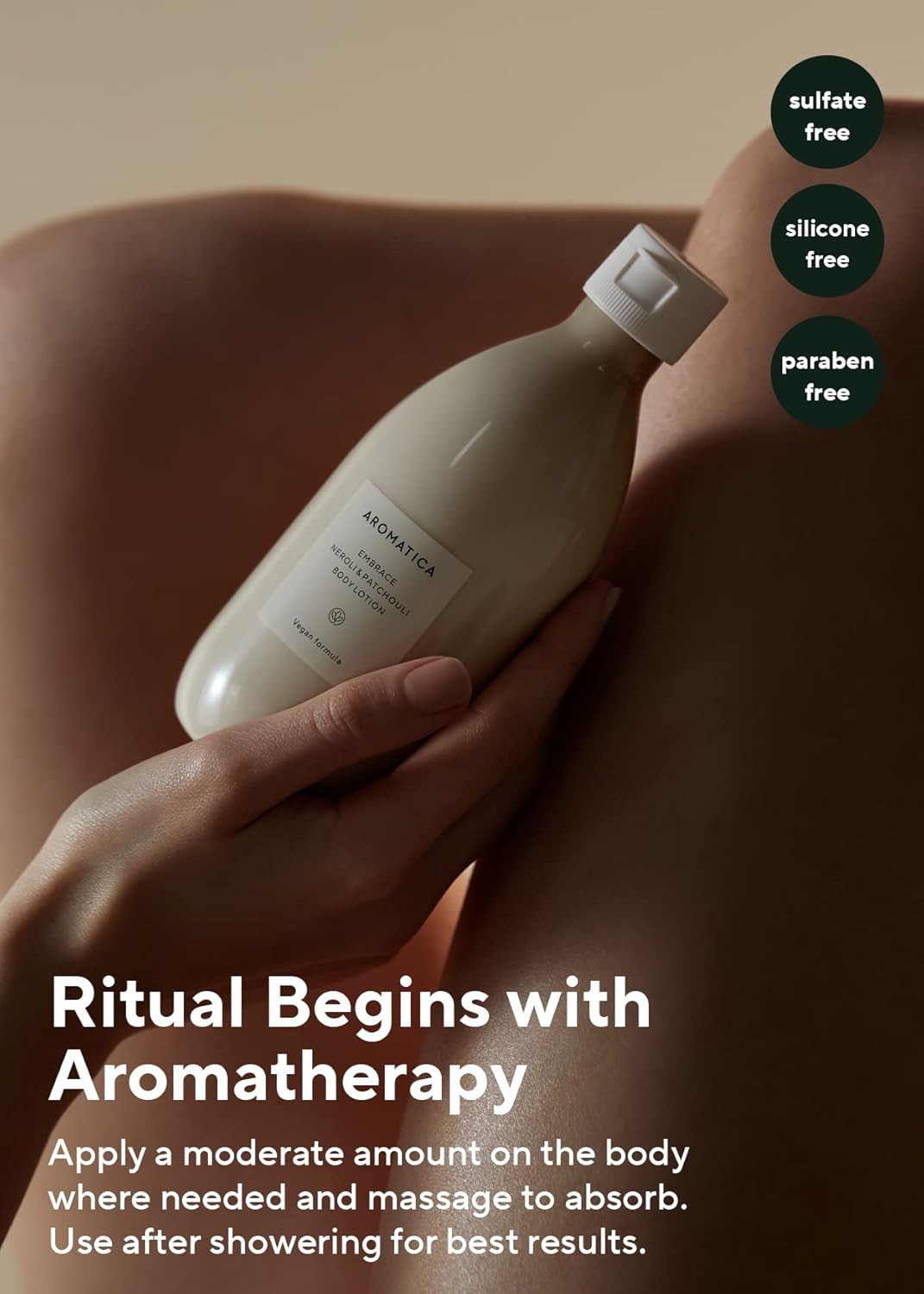AROMATICA Embrace Body Lotion Neroli & Patchouli 10.14oz / 300ml, Vegan | Naturally-derived Aromatic Fragrance | Soothing & Moisturizing Body Lotion