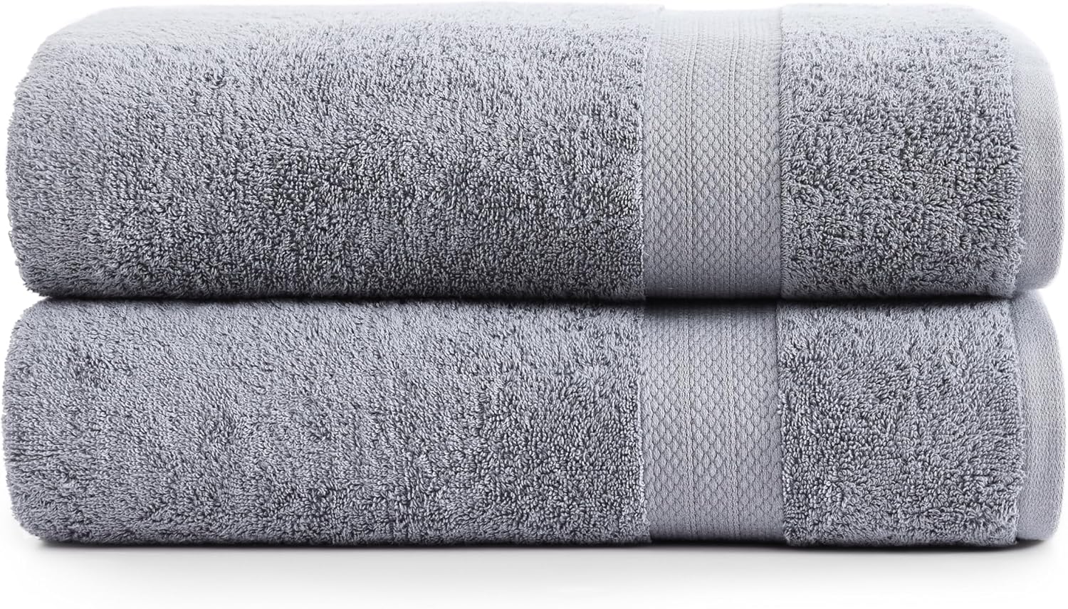 LANE LINEN 100% Cotton Oversized Bath Towels Set of 2 (35"x66") - Ring Spun Cotton Oversized Towels - Quick Dry, Soft & Absorbent Extra Large Bath Towel Set - Dorm Essentials for Girls - Space Grey