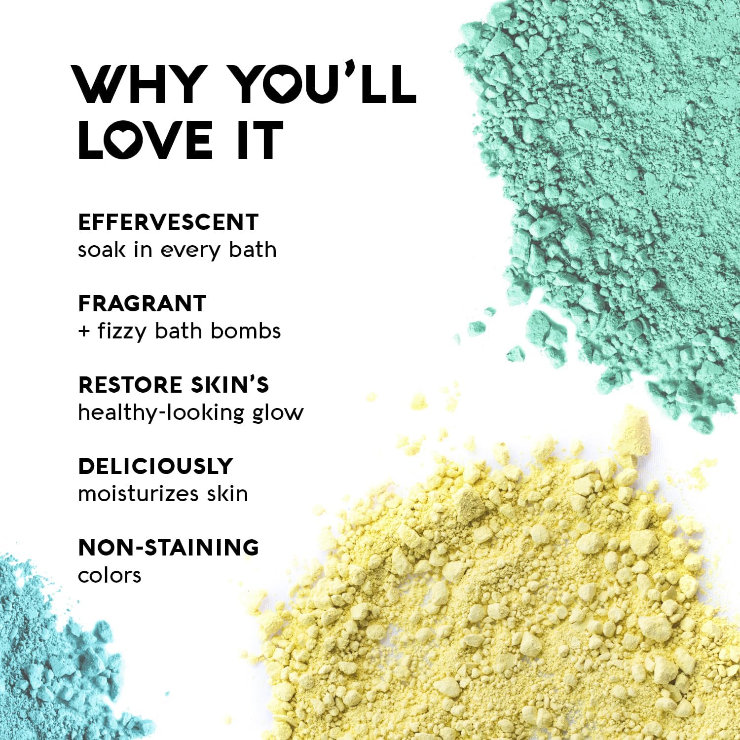 - Clean Formula: Vegan and cruelty-free bath bombs; free from parabens, sulfates, phthalates, gluten, and petrochemicals
