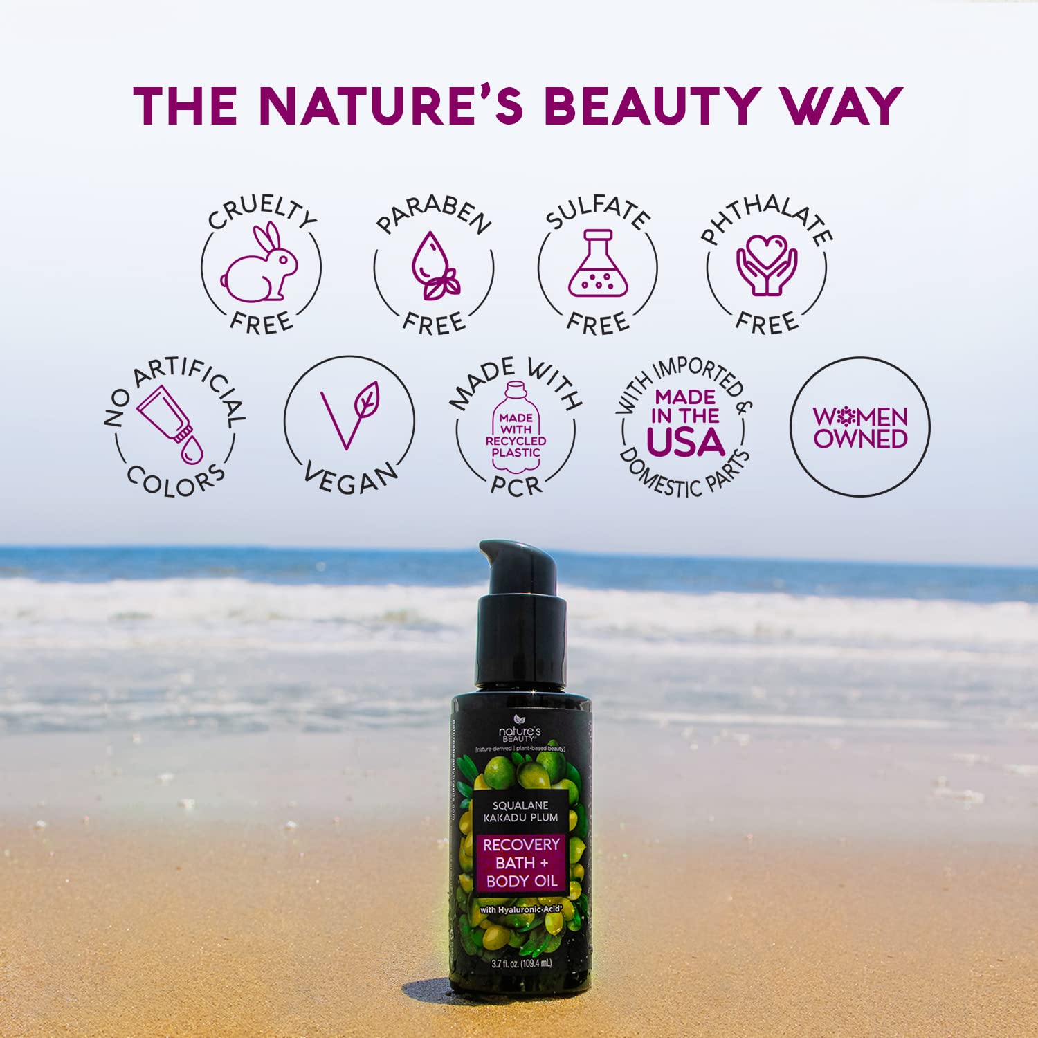 Nature's Beauty Squalane Kakadu Plum Recovery Bath + Body Oil Multi-Pack - Restore & Nourish your Skin, Quick-Absorbing, Made w/Hyaluronic Acid + Vitamin C + Almond Oil, 3.7 fl oz (2 Pack)
