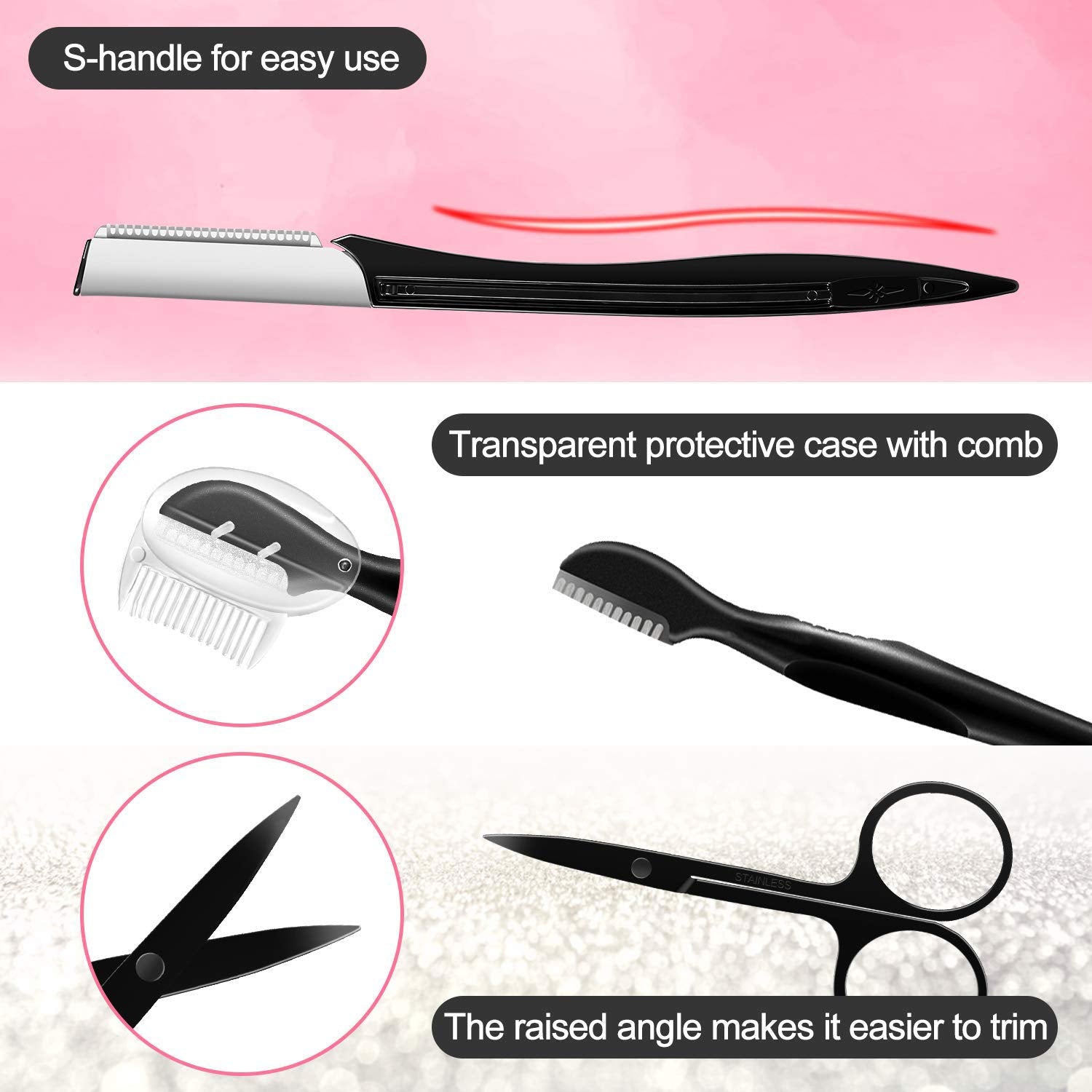- 【Perfect Little kit to Have Nice Eyebrows!】 The eyebrow scissors is sharp and curved, eyebrow pliers with different incisions, all of that can help you trim the messy eyebrows and give you a beautiful eyebrow shape. Our face razors for women, scissors and tweezers are sharp and durable.