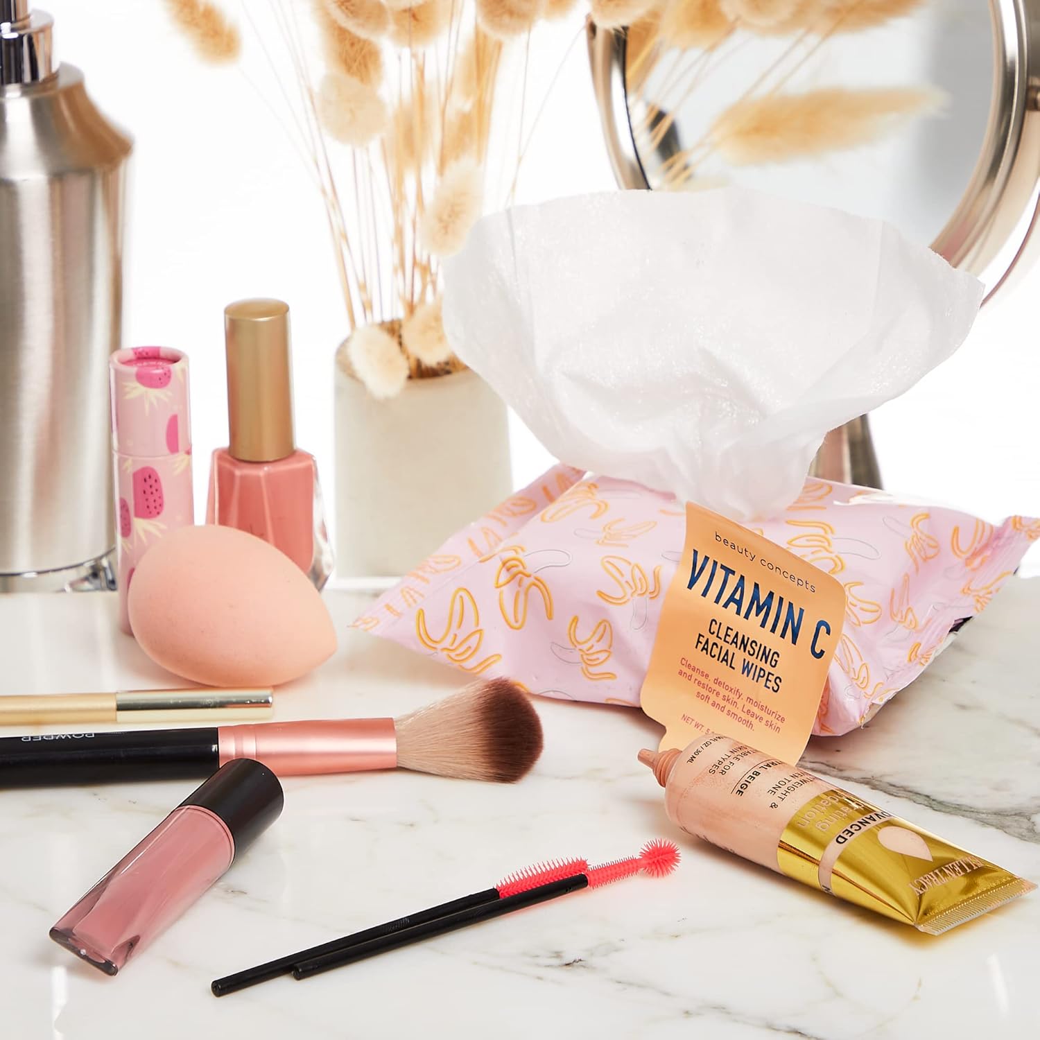 Beauty Concepts Facial Wipe Set - Packs of Face Wipes, Makeup Removing Wipes, Mint, Vitamin C, Strawberry, and Rose