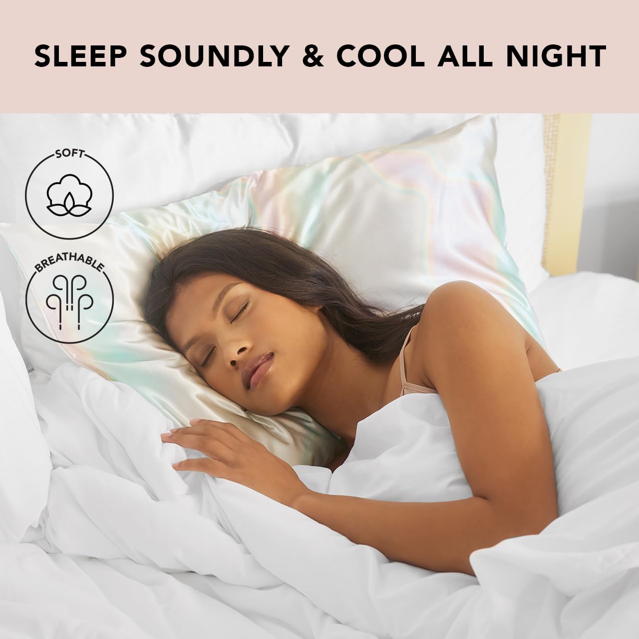 - STAYS COOL & BREATHABLE ALL NIGHT – Our satin fabric regulates temperature to keep you cool and comfortable while you sleep. The silky-soft pillow case is gentle on skin, hair, eyelashes, and eyebrows—perfect for year-round comfort.