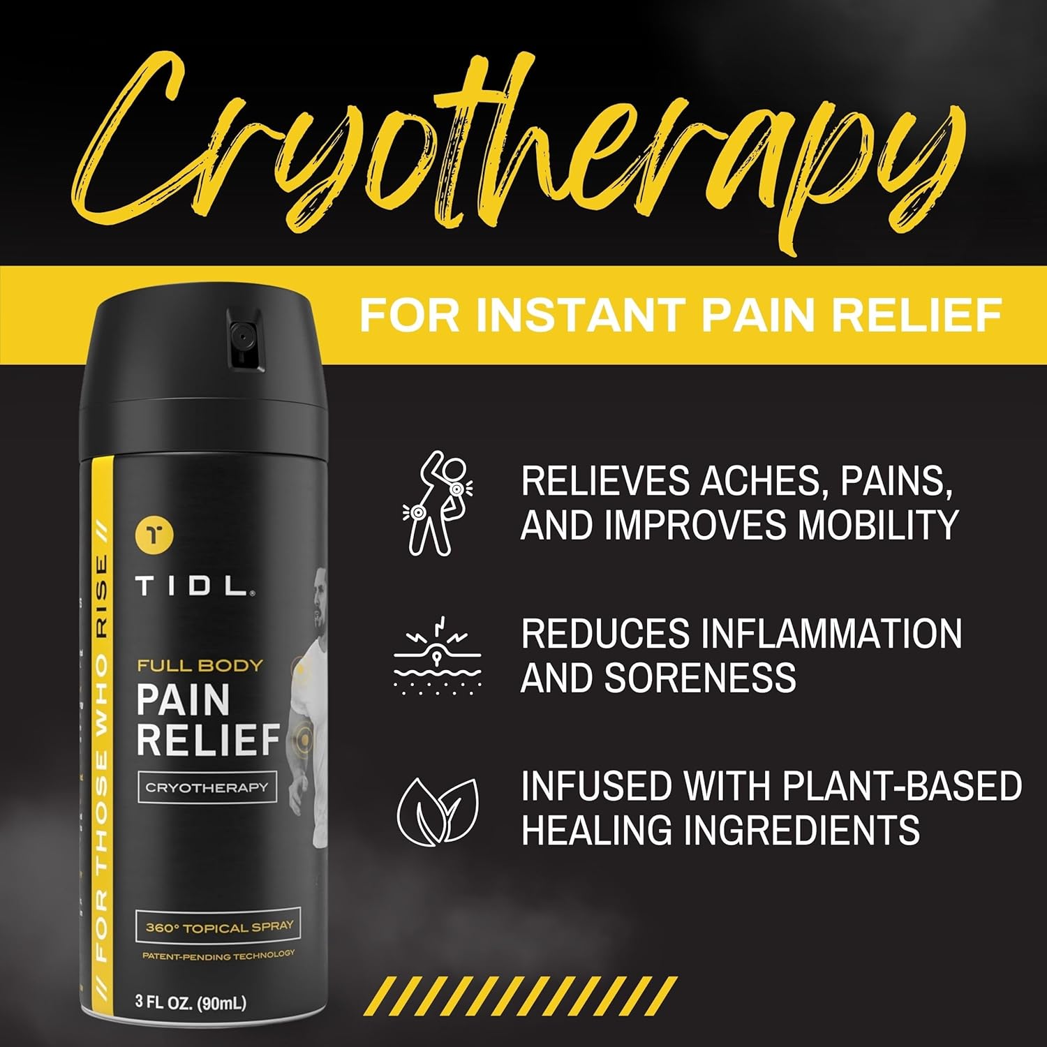 - CRYO-RELIEF PERFORMANCE: TIDL cryotherapy cooling spray combines Arnica and Menthol to deliver rapid cooling relief from muscle pain and joint discomfort. This topical arnica spray with plant-based ingredients boosts recovery, making it ideal for post-training relief.