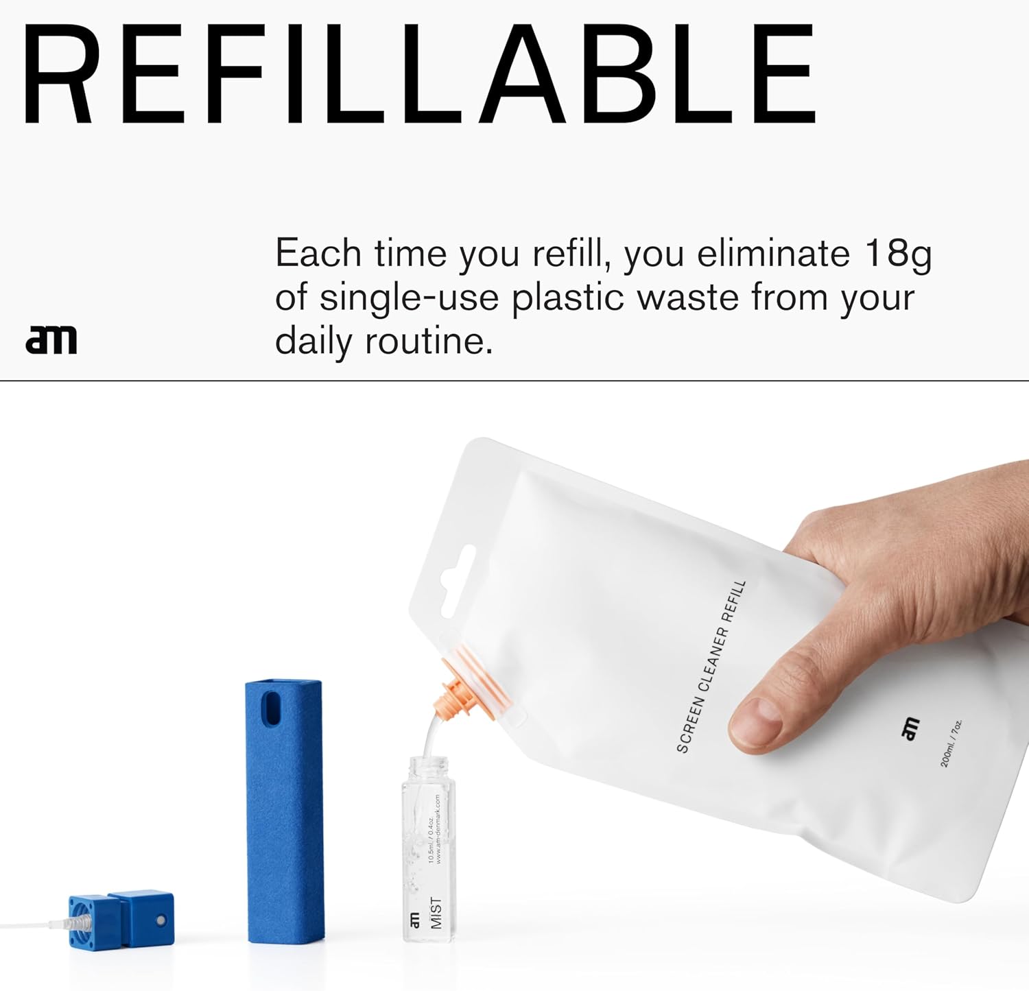 - 🌱 REUSABLE & ECO-FRIENDLY – Skip the waste. This mist spray cleaner is refillable and reusable, supporting sustainable screen care without compromise.