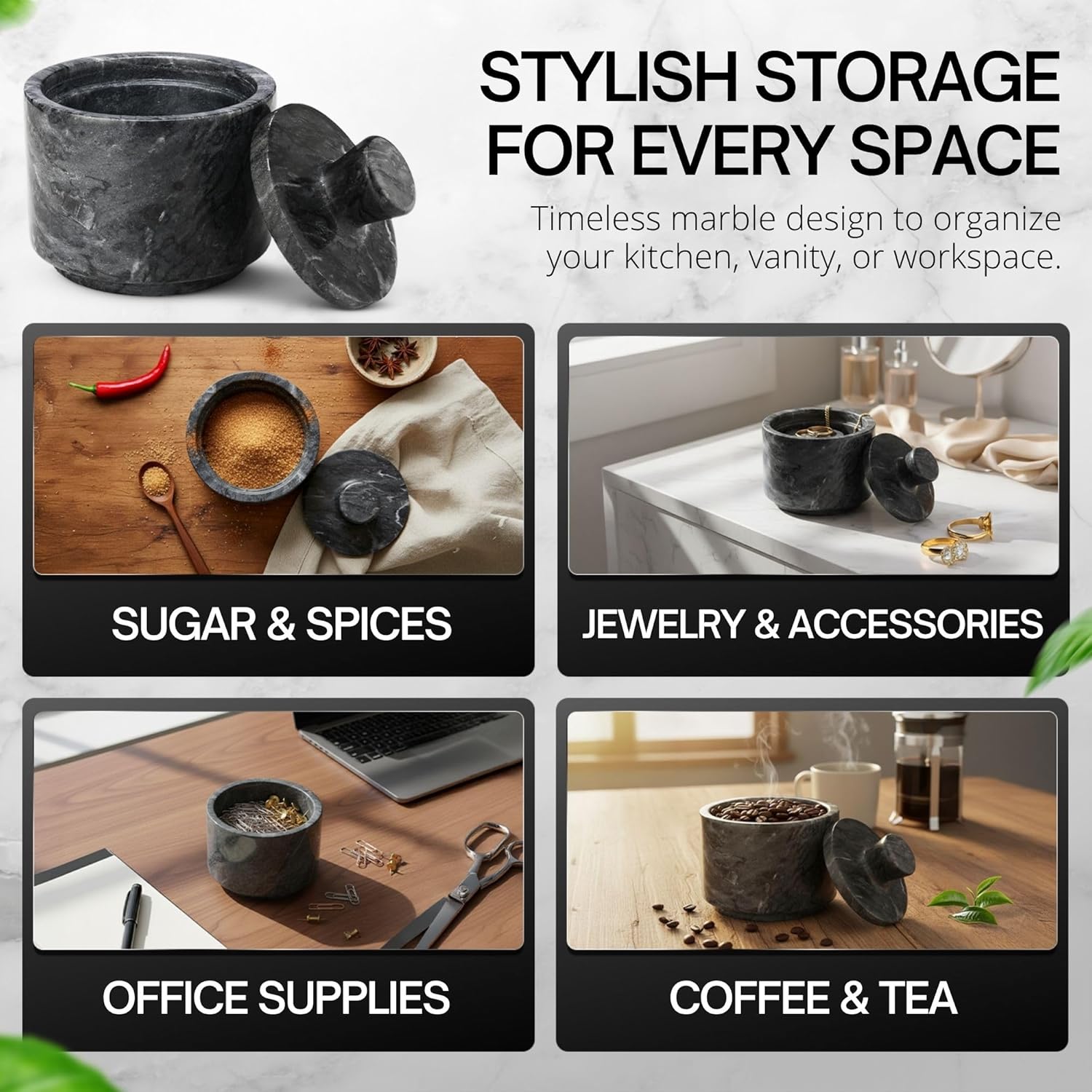 Flexzion Marble Salt Cellar with Lid, Multi-Purpose Marble Container for Salt, Pepper, Paprika and Powdered Herbs, Salt Containers for Countertop, Box for Jewelry, Watches & Accessories (Black)