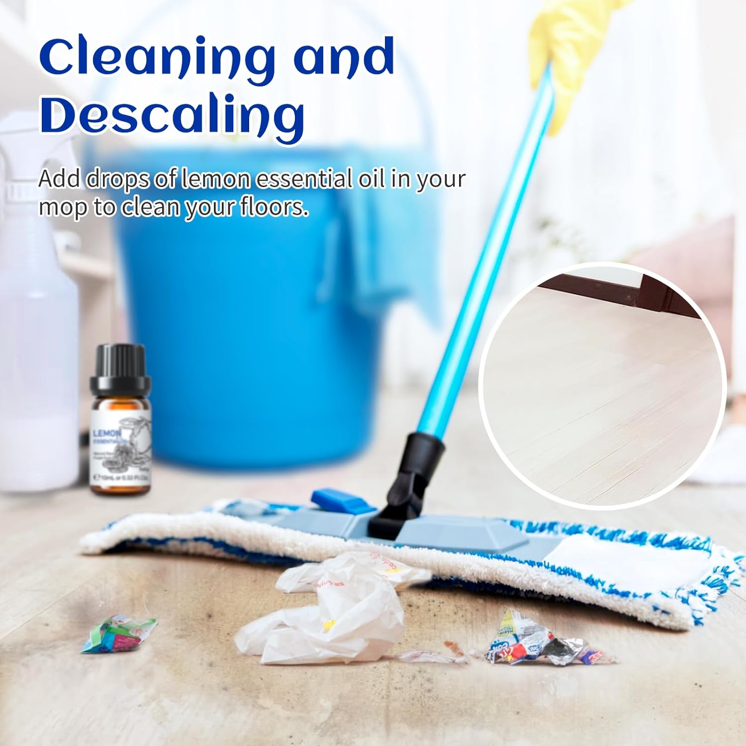 HIQILI Lemon Essential Oil, Household Cleaning, Air Purification, Skin Care, Can be Added to Cleansers, Sprays, Body Lotions Use - 0.33 Fl Oz/10ML
