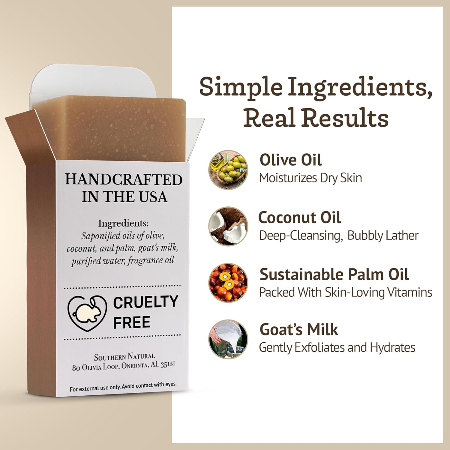 Southern Natural Goat Milk Soap Bar - Oatmeal Milk & Honey 3 Pack - For Dry Sensitive Skin. Natural, Handmade Soap For Men, Women, Kids, Face & Body