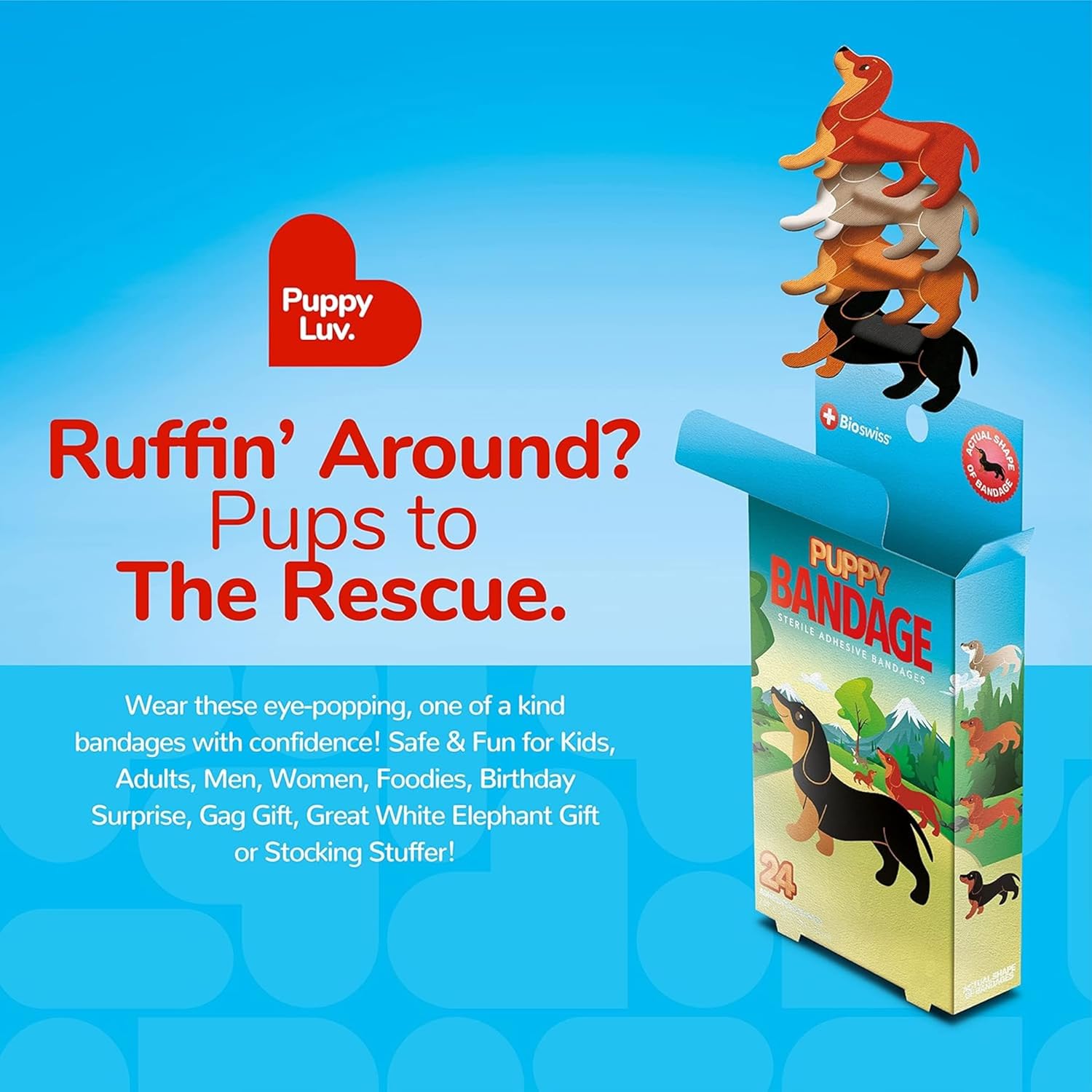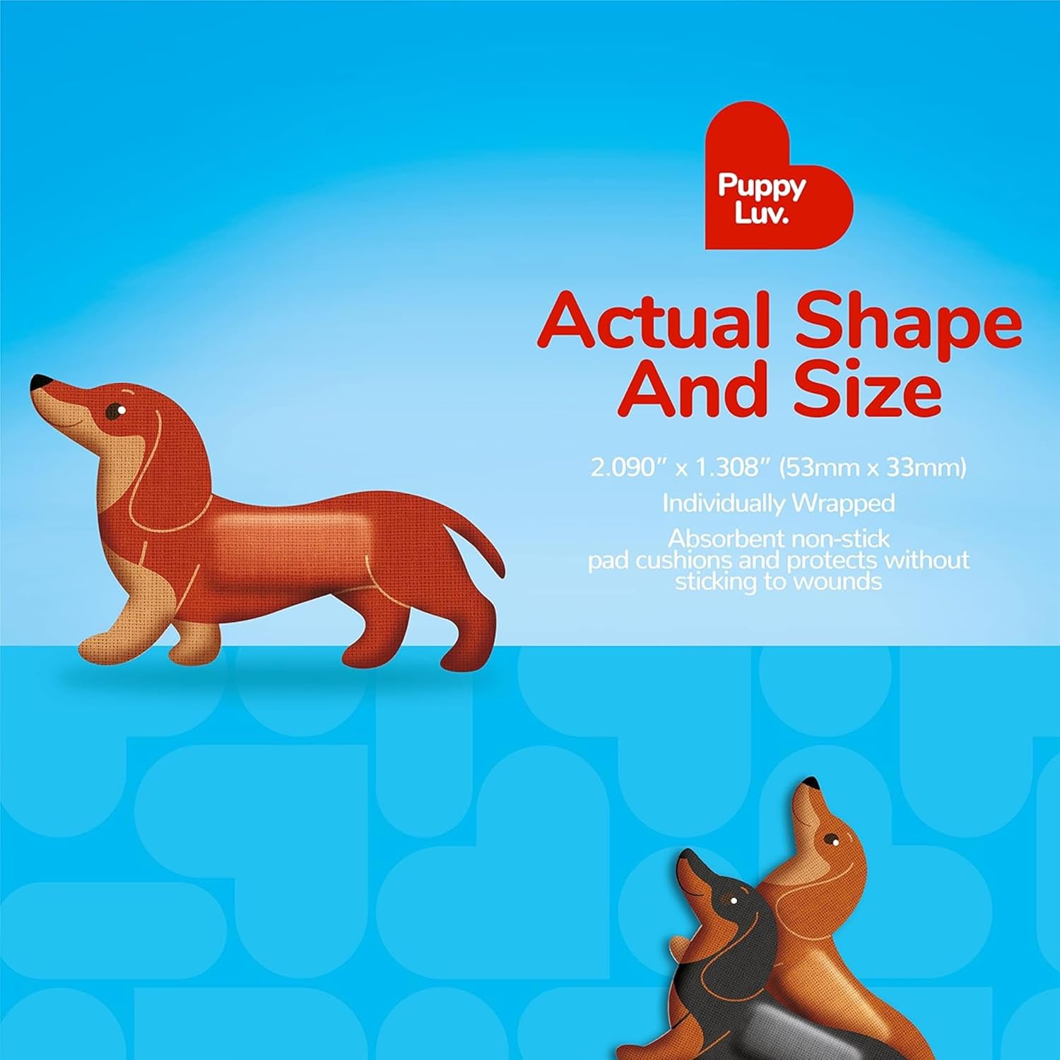 - 24 WEINER DOG KIDS BANDAGES: Fun dog-shaped adhesive bandages pack helps protect cuts, scrapes, and minor wounds while making healing less stressful for children; bandages come in 4 assorted styles