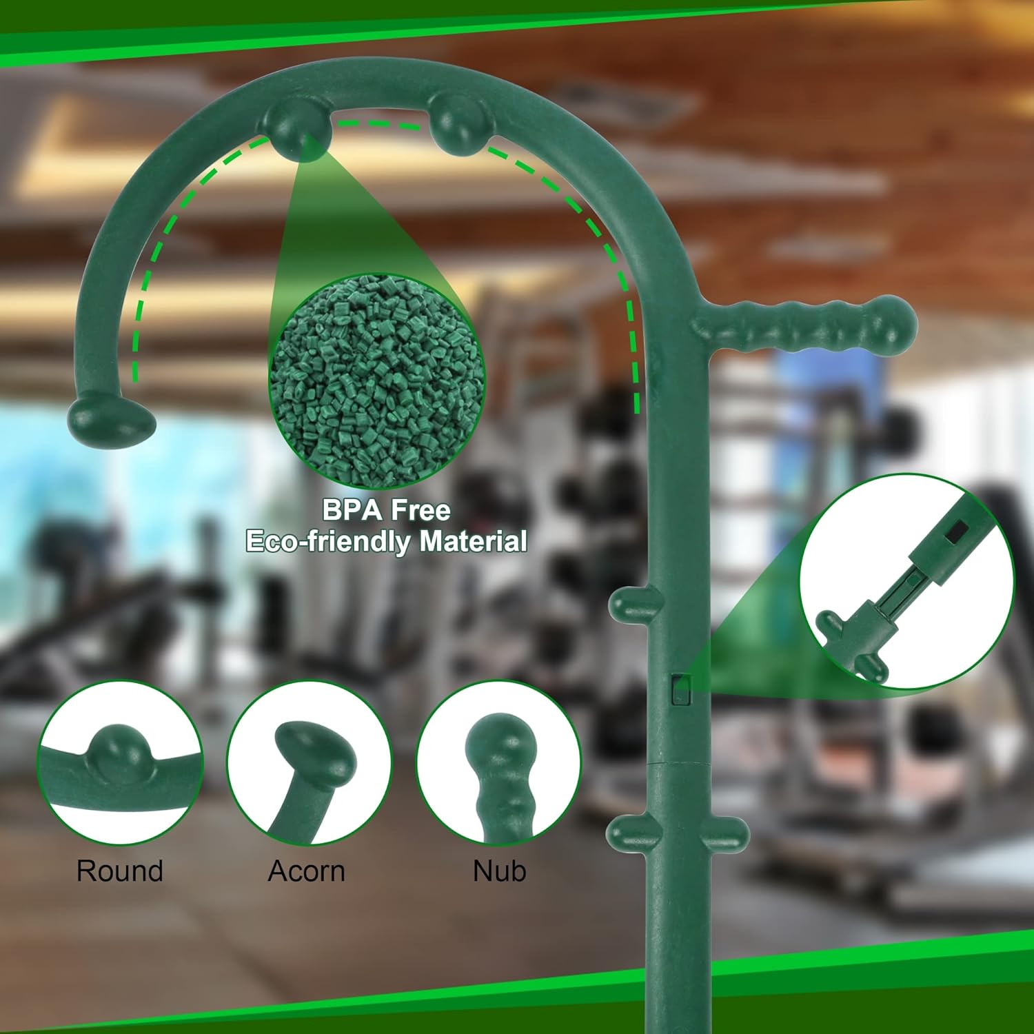 - 10 Massage Knobs: This highly durable and stable massager rod has 10 massage knobs with 3 types - the acorn shape for deep tissue, round for gliding over larger muscle groups, and nub for the lower back. pinpoint the pressure points throughout your body, when pressed against various trigger points or pressure points throughout the body, can provide rapid relief