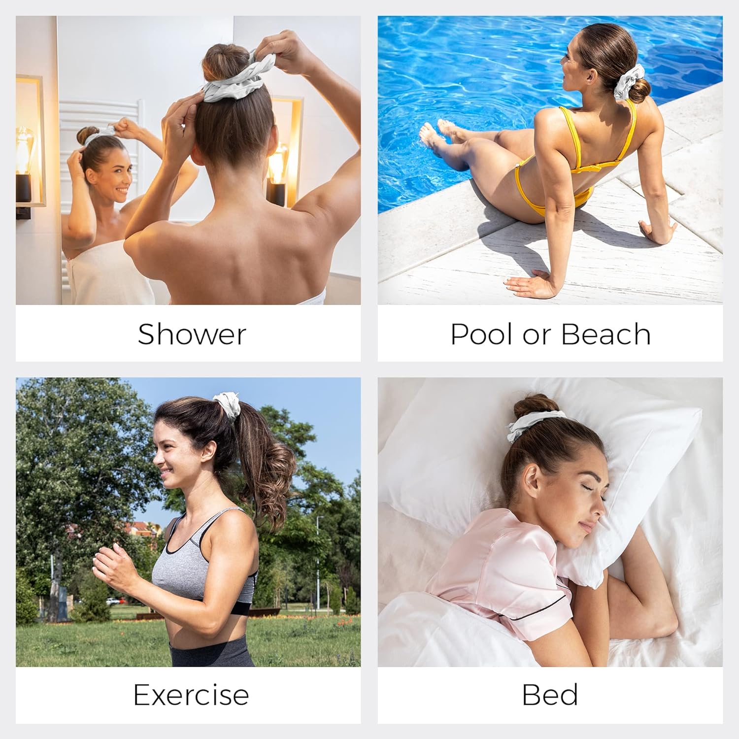 - THE POWER OF RAPID ABSORPTION - Experience the hair-drying miracle! Our silky smooth microfiber scrunchies are like thirsty sponges that gobble up all the extra moisture in seconds, stopping all that messing dripping. Whether youâre straight of the shower, pool, beach, or gym â The Perfect Haircare Towel Drying Scrunchies has you covered!