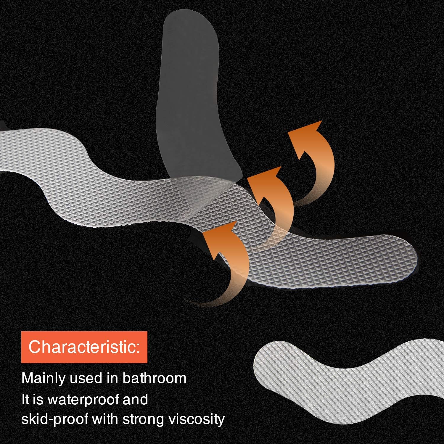 - Design Principle. Each strips can easily stick to the surface of bathtub using special ecological glue. The upper surface comes with approximately hundreds tiny protrusions per piece to increase friction. At the same time, this design is meant to allow water to flow freely further reducing the chances of soapy water accumulating.
