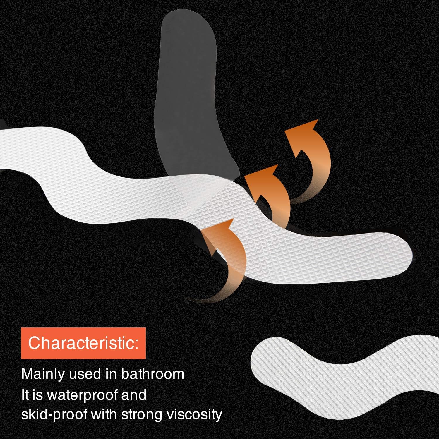 - Design Principle. Each strips can easily stick to the surface of bathtub using special ecological glue. The upper surface comes with approximately hundreds tiny protrusions per piece to increase friction. At the same time, this design is meant to allow water to flow freely further reducing the chances of soapy water accumulating.