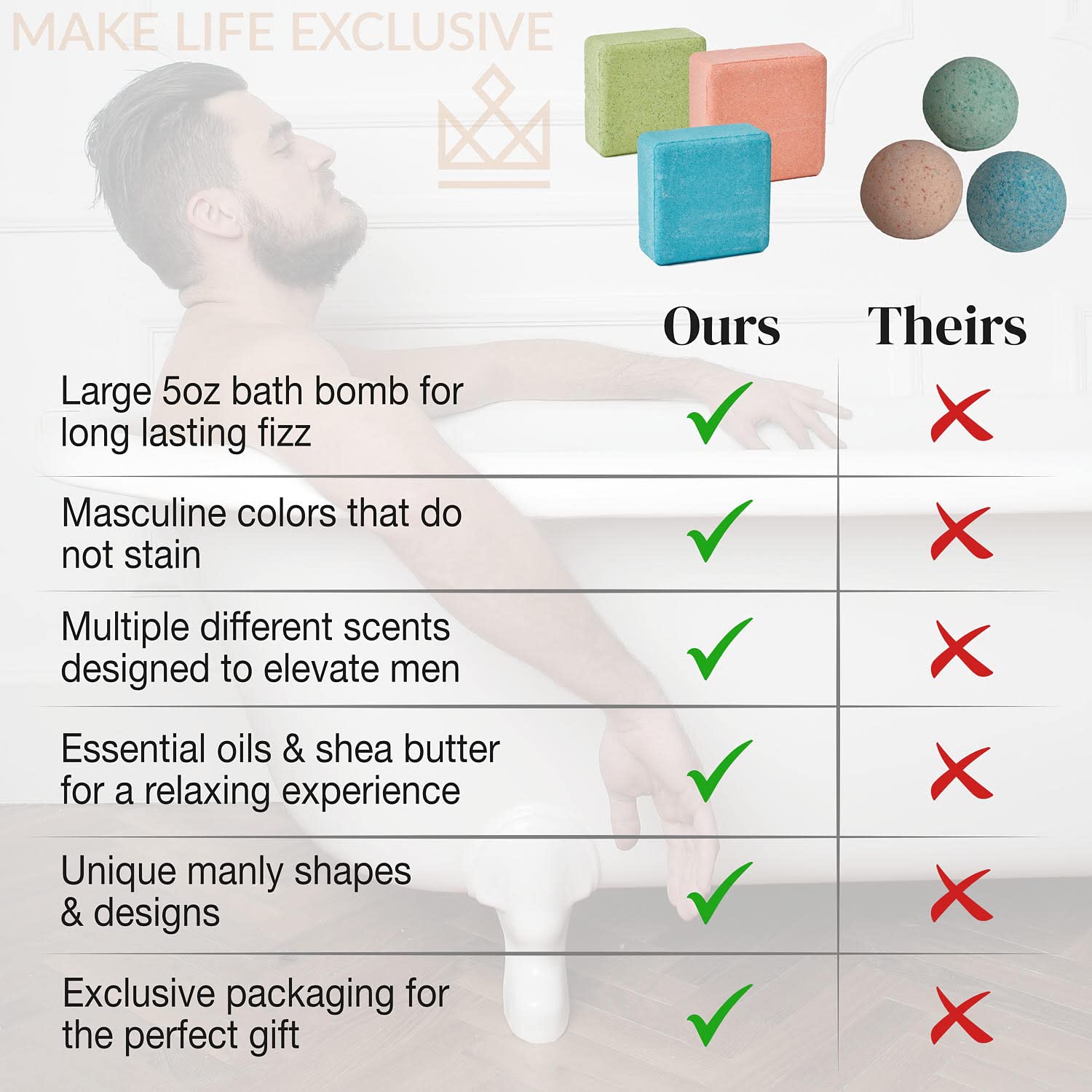 - đMAKE LIFE EXCLUSIVE GUARNTEE! - Put your mind at ease with our 1 year money back guarantee! These bath bombs have been tried, tested and voted by men, for men. With these scents, we are confident that everyone will enjoy this aromatic experience!