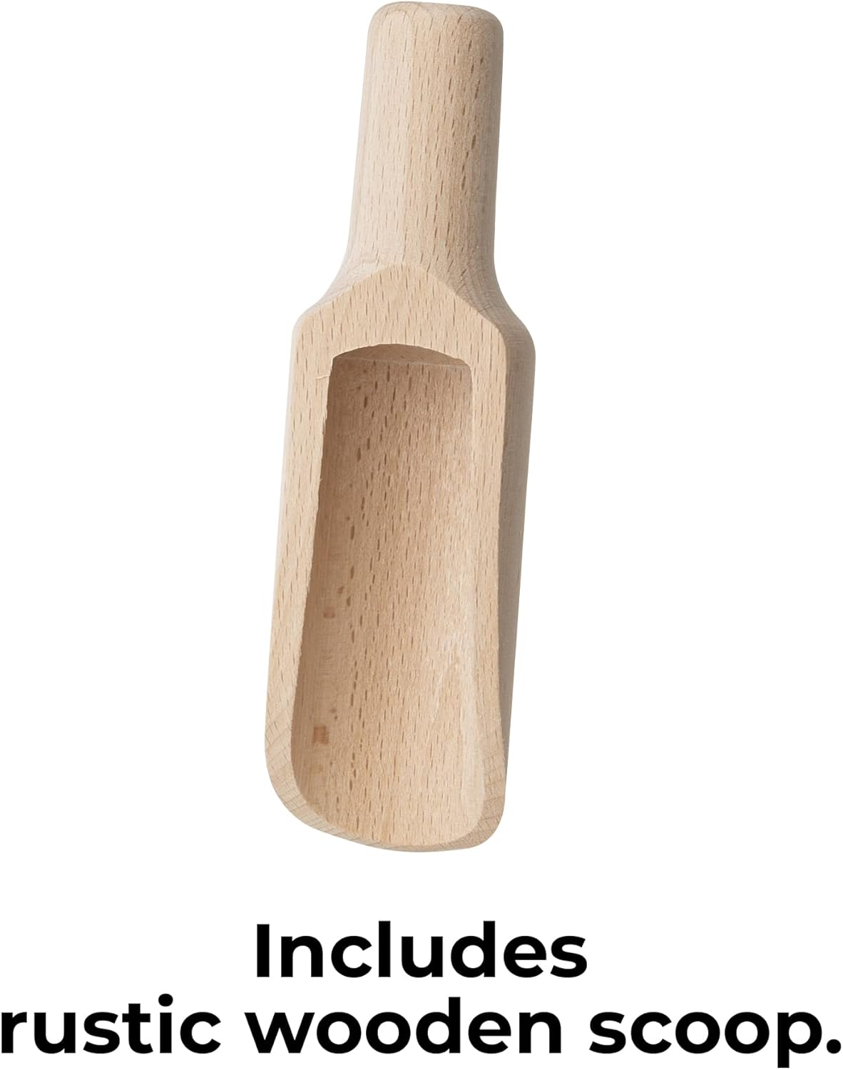 - COMES WITH WOODEN SCOOP - The perfect pairing for your stylish cannister to help with scooping out your salt or other items for home use
