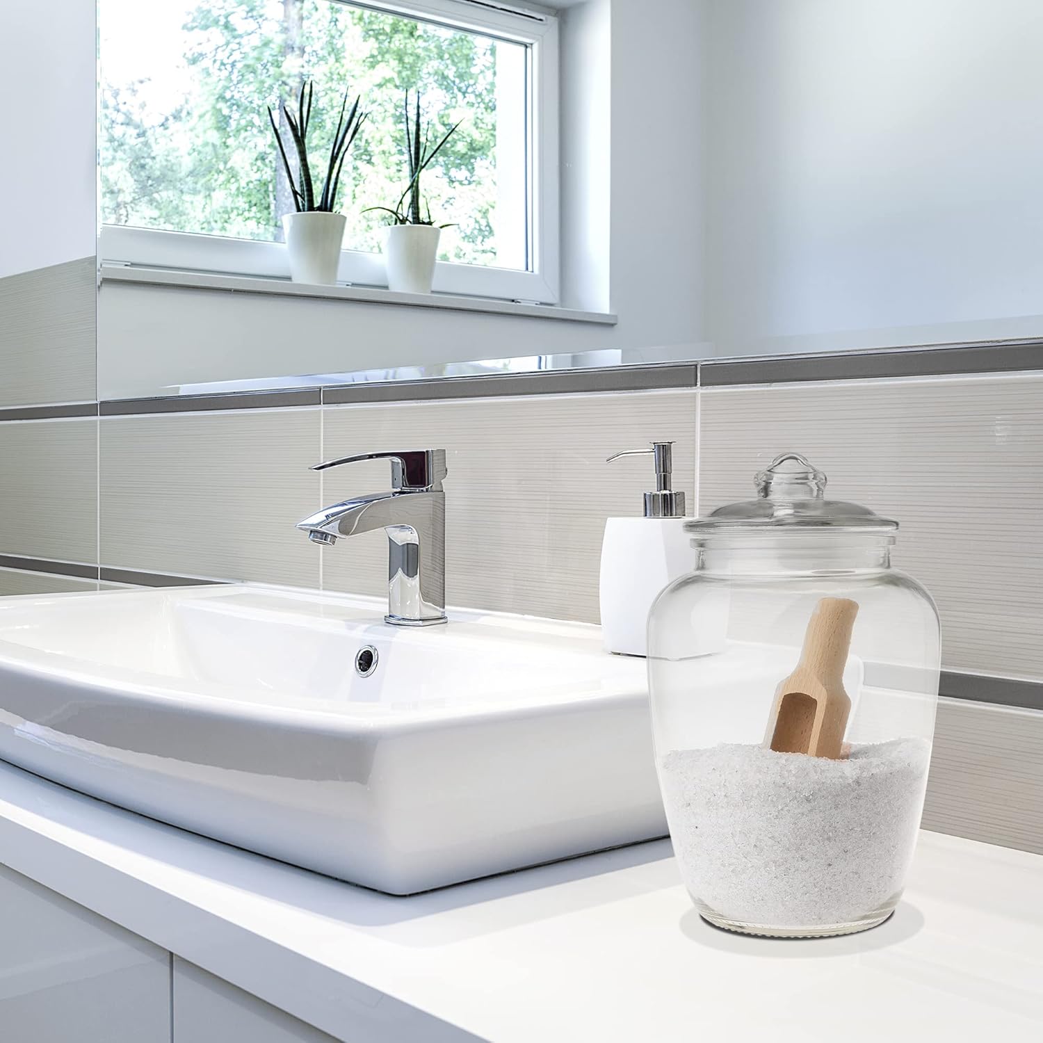 Glass Jar with Wooden Scoop for Bath Salt, Container With Airtight Lid Holds 74 oz of Bath Salt Epsom Salt, Laundry, Flour Multi Use