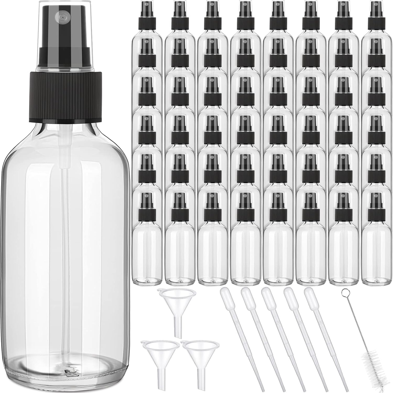 Nuogo 50 Pieces Mini Glass Spray Bottles Bulk 4 Oz Fine Mist Glass Bottles with Funnel Dropper and Cleaning Brush Refillable for Essential Oils, Perfumes and Aromatherapy(Transparent)