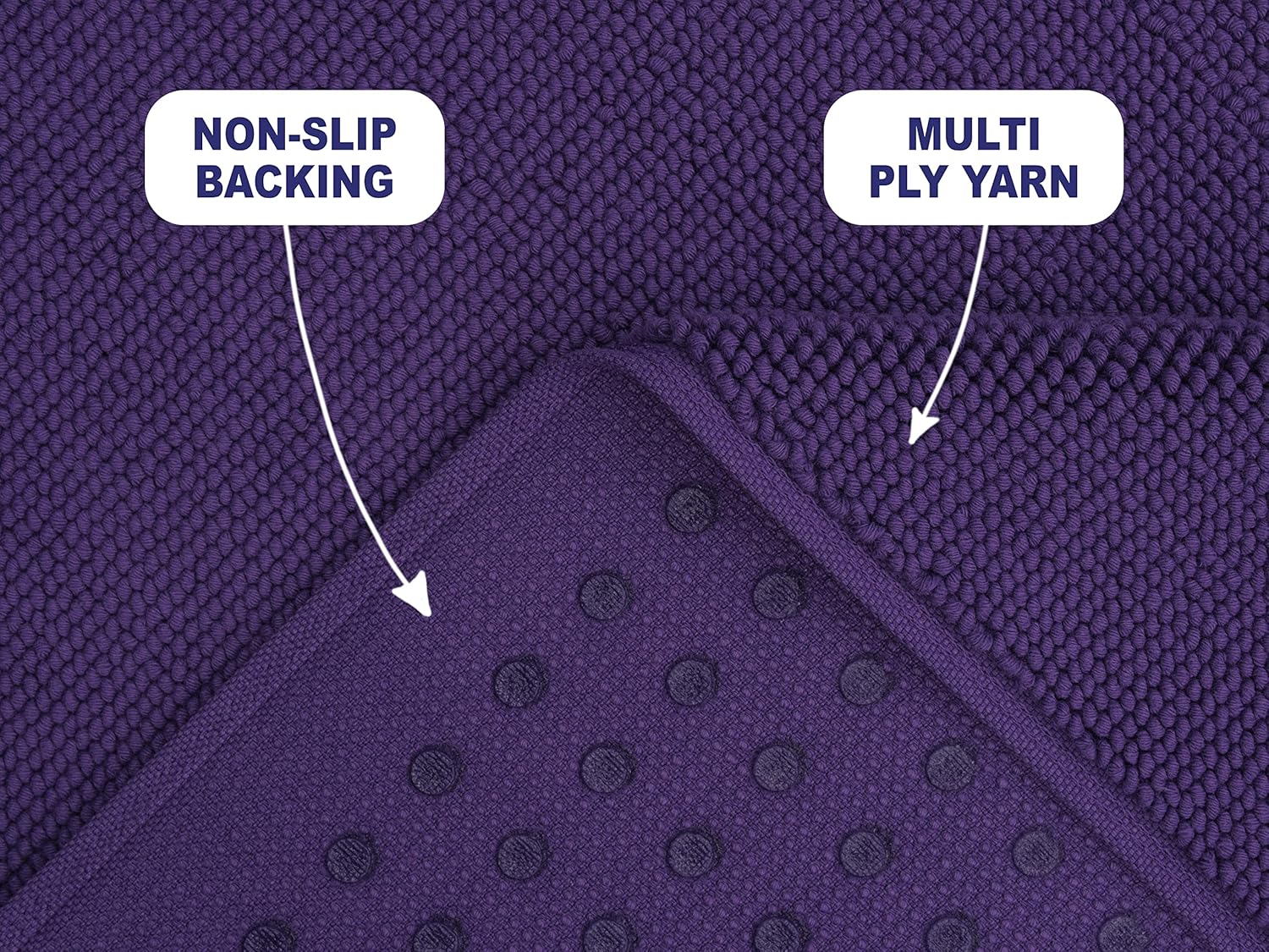 American Soft Linen Bath Rug, 20 in 34 in 100% Cotton Bath Mats Rugs for Bathroom, Slip Reducer Washable Shaggy Form Area Rugs, Purple Bath Rug