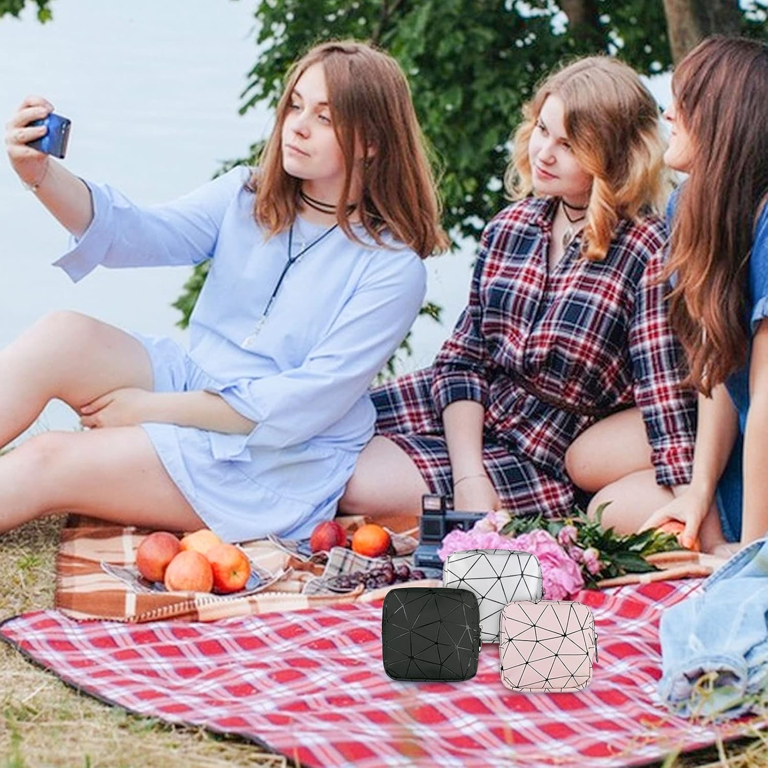 - Cute 4 Piece Set and Privacy Protection: We specially designed four cute sanitary napkin storage bags for women, which are black, silver, green and pink, designed in rhomboid, giving you different feelings, and can effectively help you avoid embarrassment in special periods