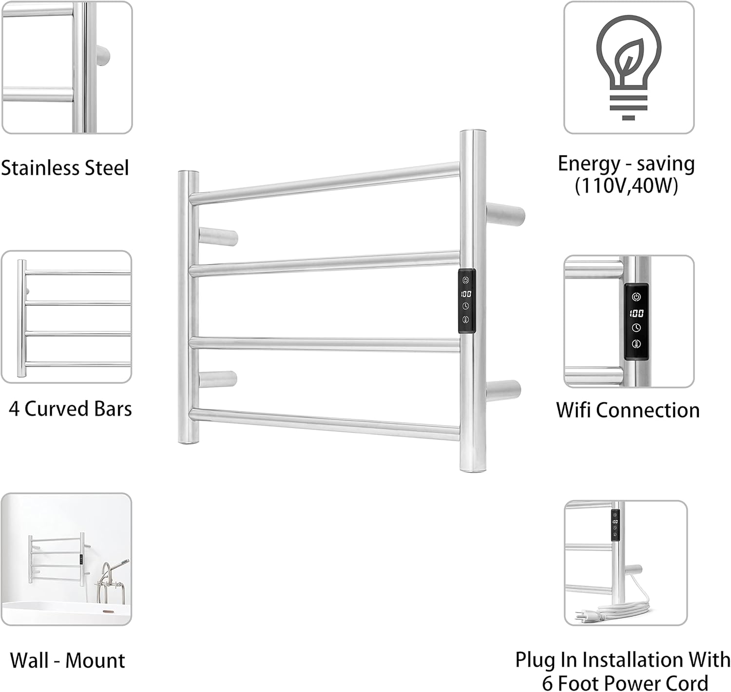 - [APP CONTROL & SMART SCHEDULING]: Turn the towel warmer on or off from anywhere in the world with your smartphone using the SmartLife app. Set the towel warmer to automatically turn on/off as needed.