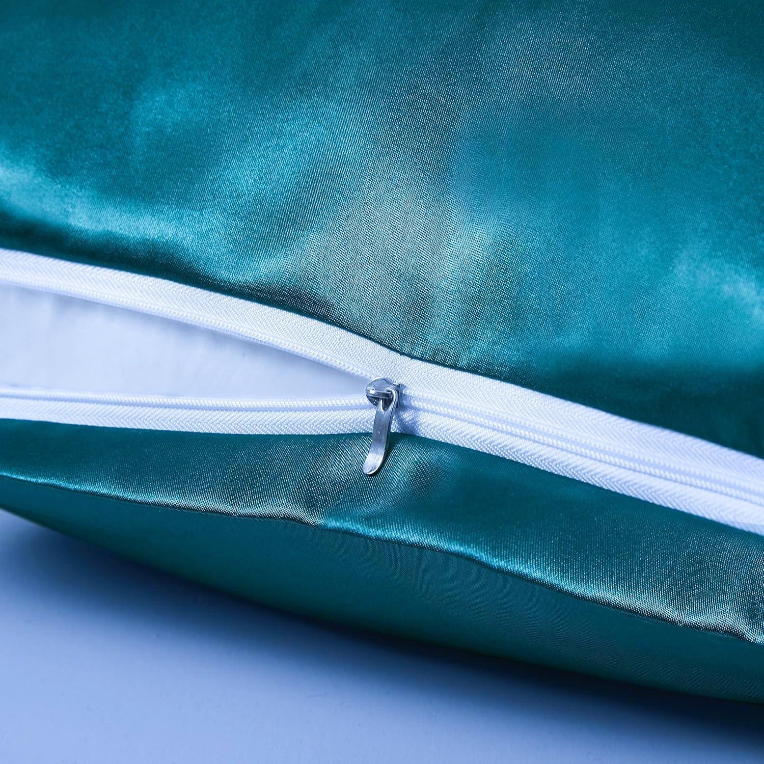 Juwenin Bedding,Super Soft and Luxury Silky Satin Pillowcase with Zipper (Silky Satin Pillow Case for Hair) Set of 2 (Teal, Queen(20''x29''))
