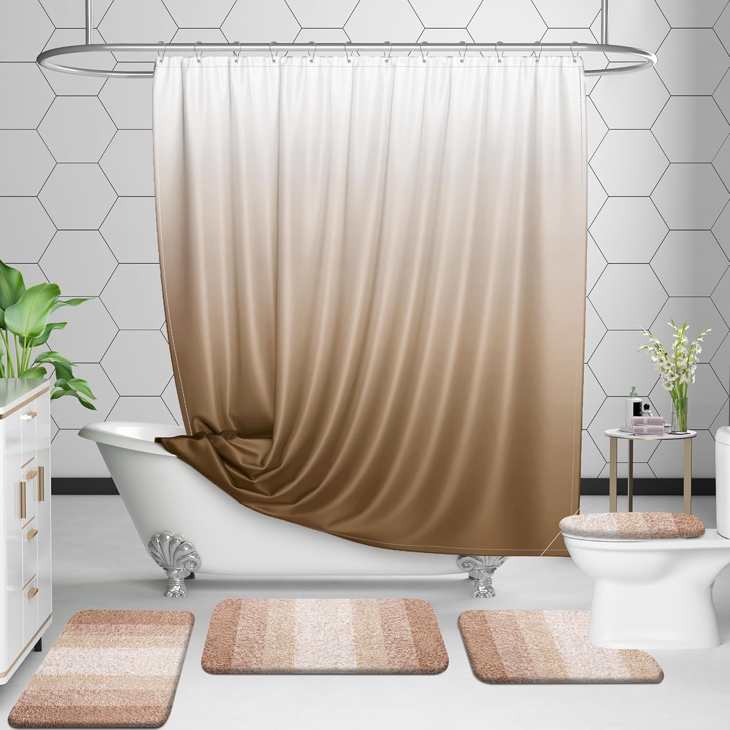 - [Matching Collection, Beautiful DƩcor & Versatile] Elevate your bathroom decor with our elegant gradient color stripe mats, ideal for sinks, showers, and beyond. Coordinate with matching toilet lid covers and contour rugs for added warmth and style. Complete the ensemble with our complementing shower curtains. Perfect for enhancing your own space with sophistication.