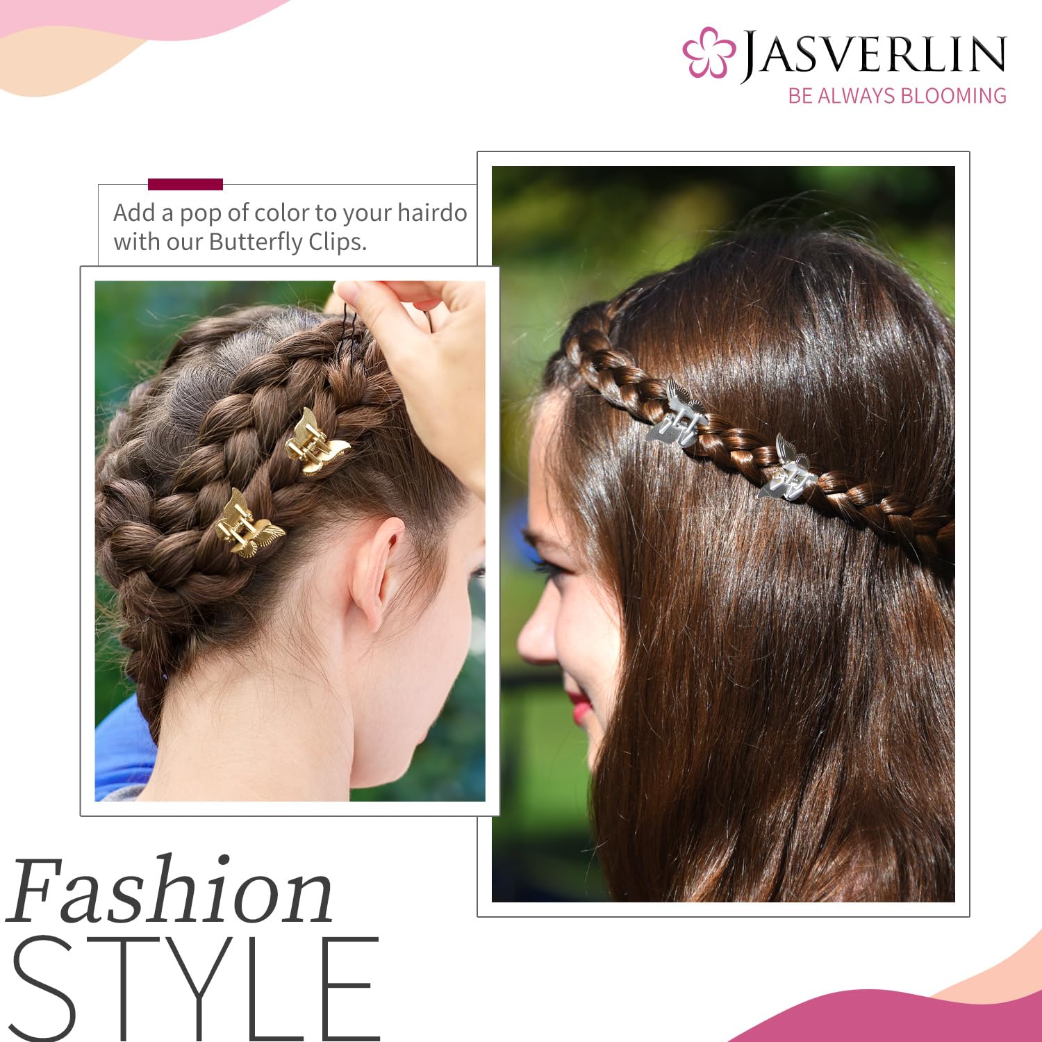 - Sophisticated Metallic Colors: Our JASVERLIN butterfly hair clips come in a set of fiftyâtwenty-five each of silver and gold. The metal paint coating is safe for children and odorless, and long-lasting color that complements any outfit