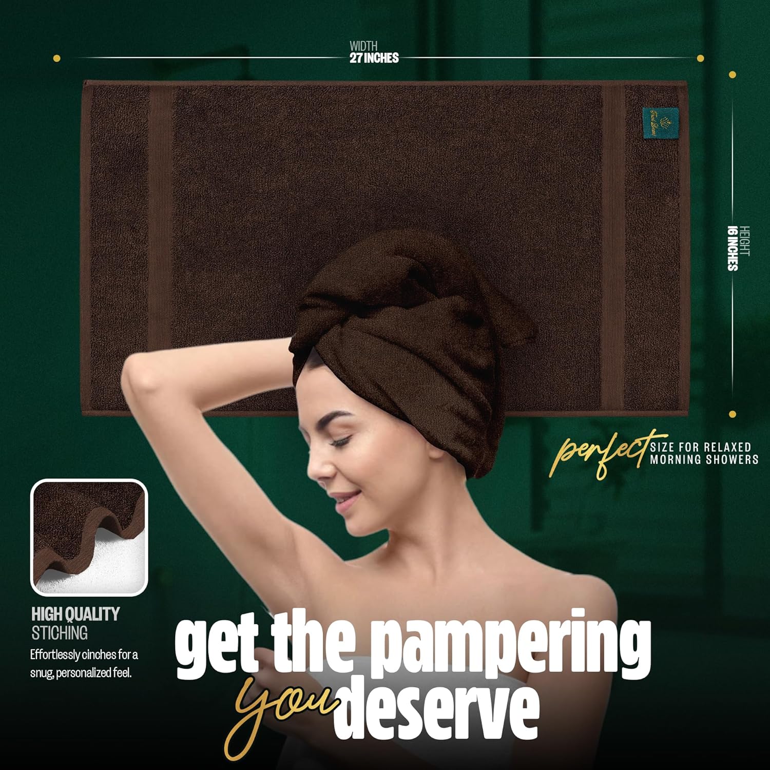 Pearl Linens Pack of 24 100% Cotton Hand Towels, Salon Towels for Spa, Gym and Bathroom Use, Hair Towels in Bulk, Soft, Absorbent, Quick Dry & Machine Washable, 16x27 inches, Brown