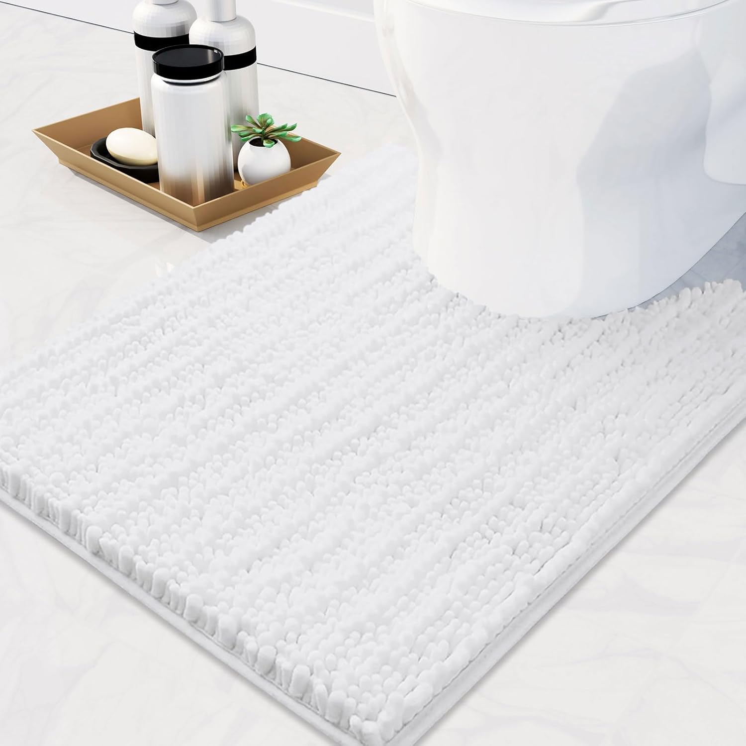 Arotive Luxury Chenille Toilet Rugs U-Shaped, Extra Soft Thick Absorbent Bathroom Mat, Non-Slip Shaggy Plush Contour Rugs, Machine Wash Dry Bath Mat for Toilet Base, 24x20, White