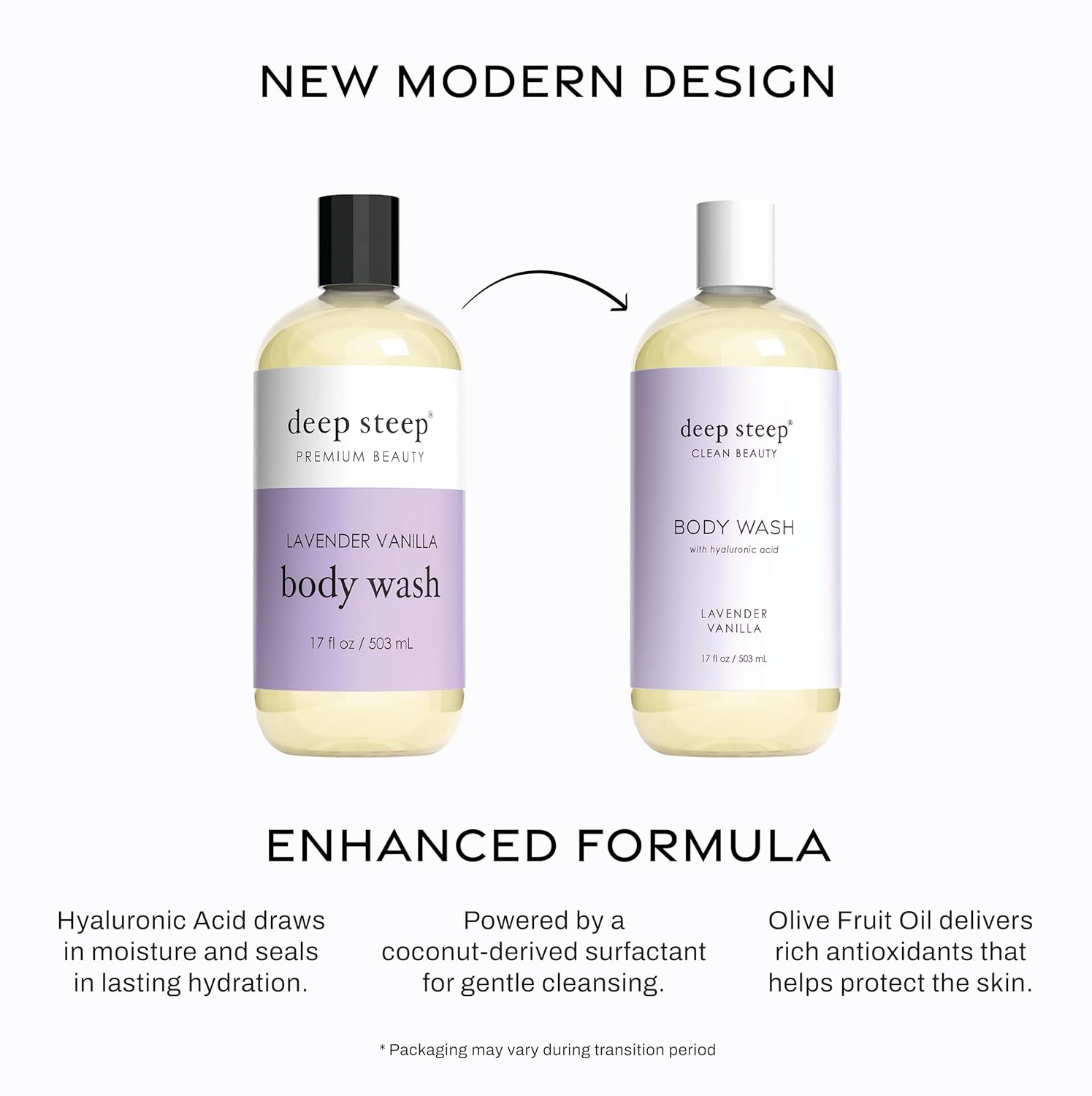 Deep Steep Body Wash, Lavender Vanilla, 17 oz – Hydrating Shower Gel with Hyaluronic Acid, Shea Butter, Aloe Vera & Argan Oil – Vegan, Clean Beauty, Clean & Refreshed Skin