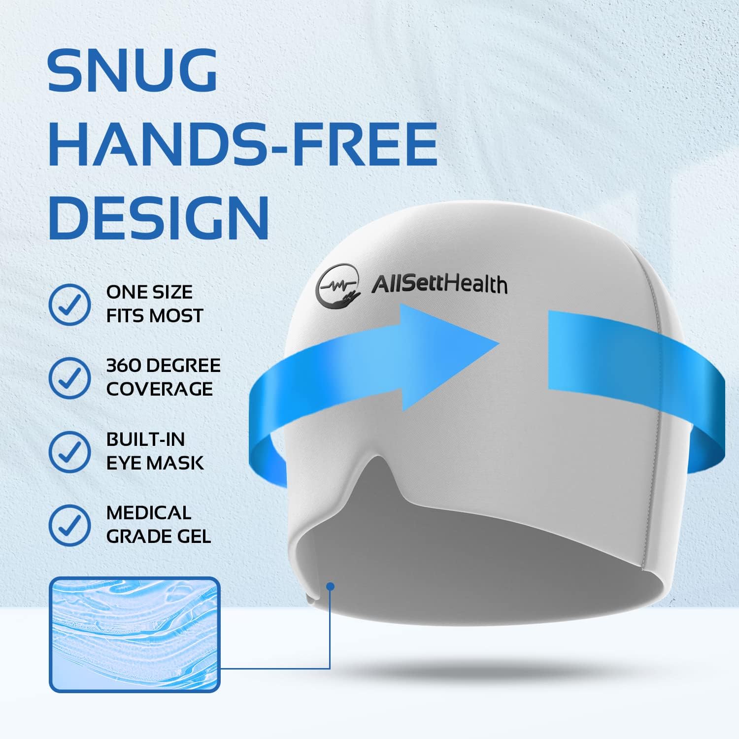 - Headache and Migraine Relief - Finally, natural drug free relief for headaches and migraines that actually works! This migraine ice head wrap offers 360 degrees of coverage to completely envelop your head in an icy cocoon of coolness and compression.
