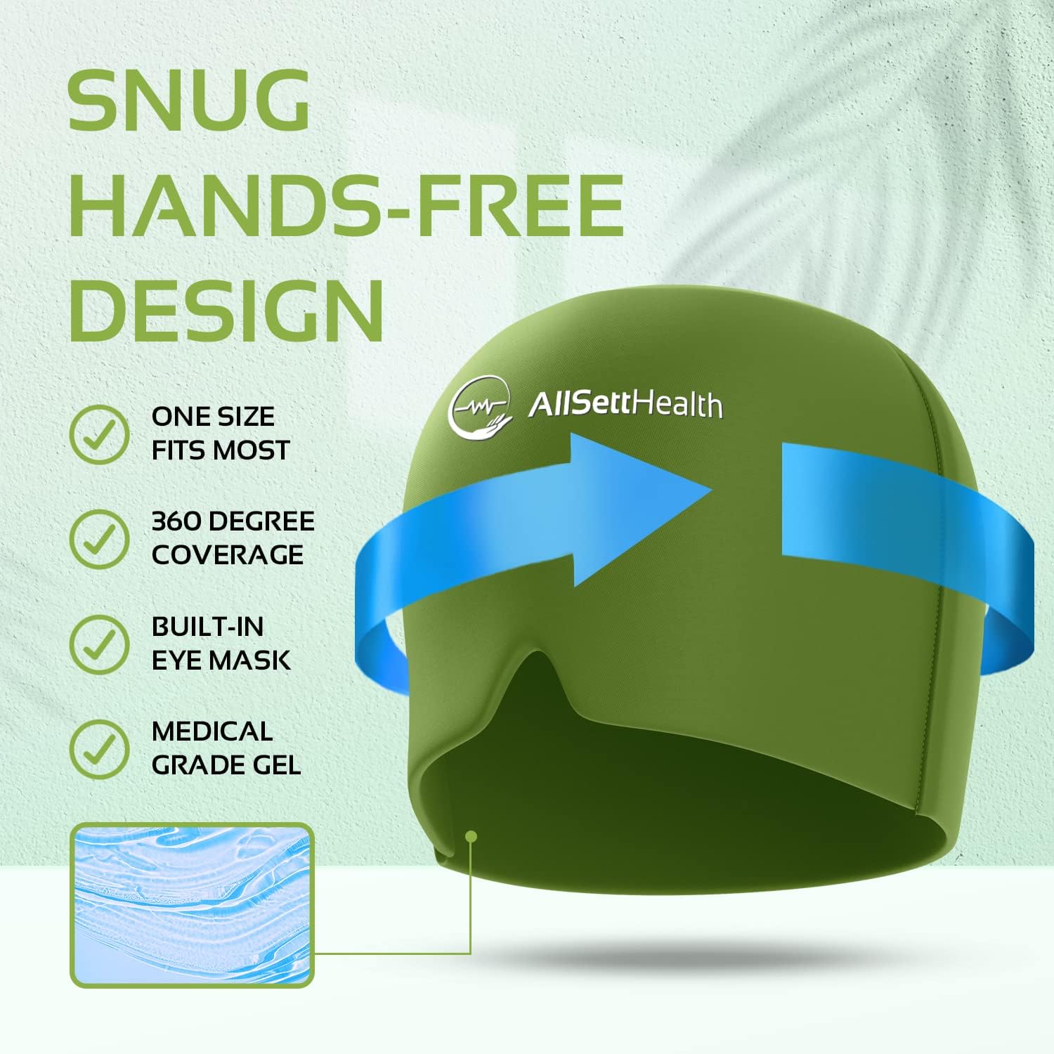- Headache and Migraine Relief - Finally, natural drug free relief for headaches and migraines that actually works! This migraine ice head wrap offers 360 degrees of coverage to completely envelop your head in an icy cocoon of coolness and compression.