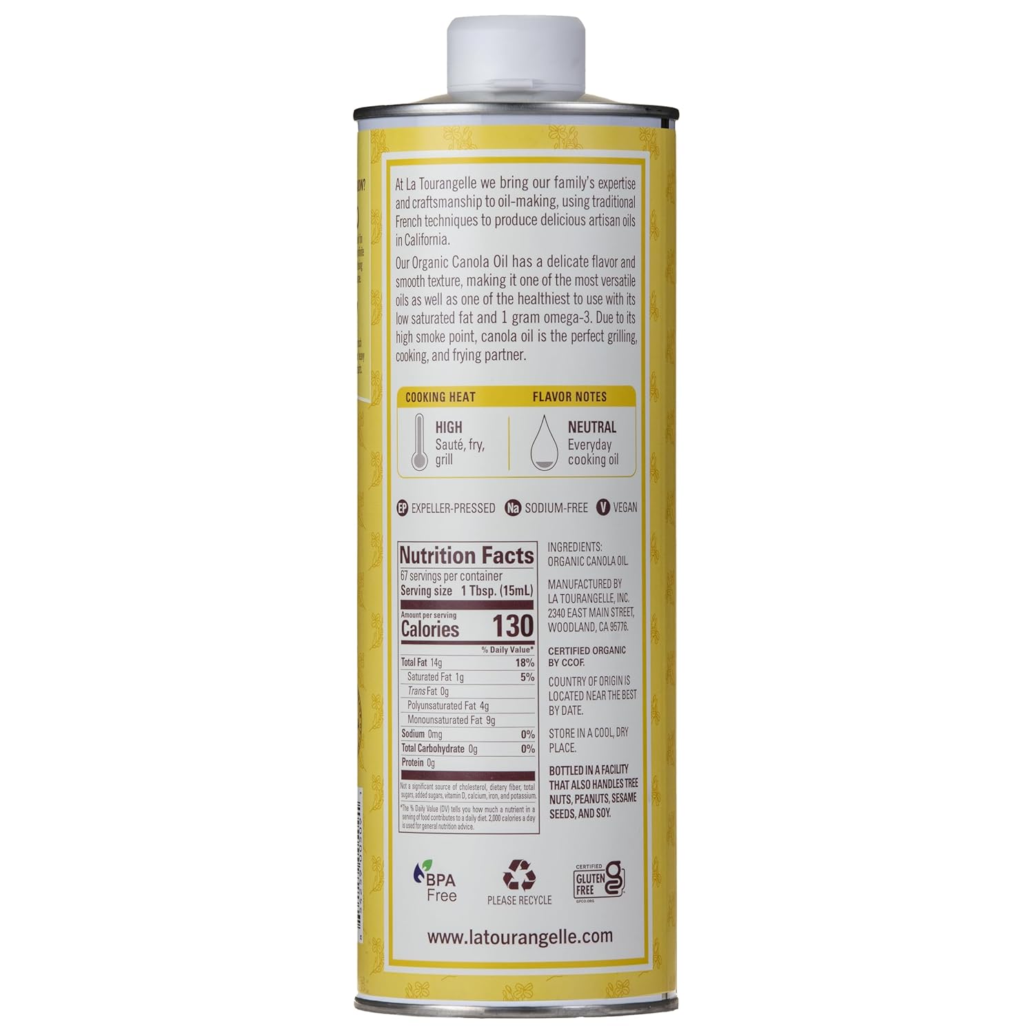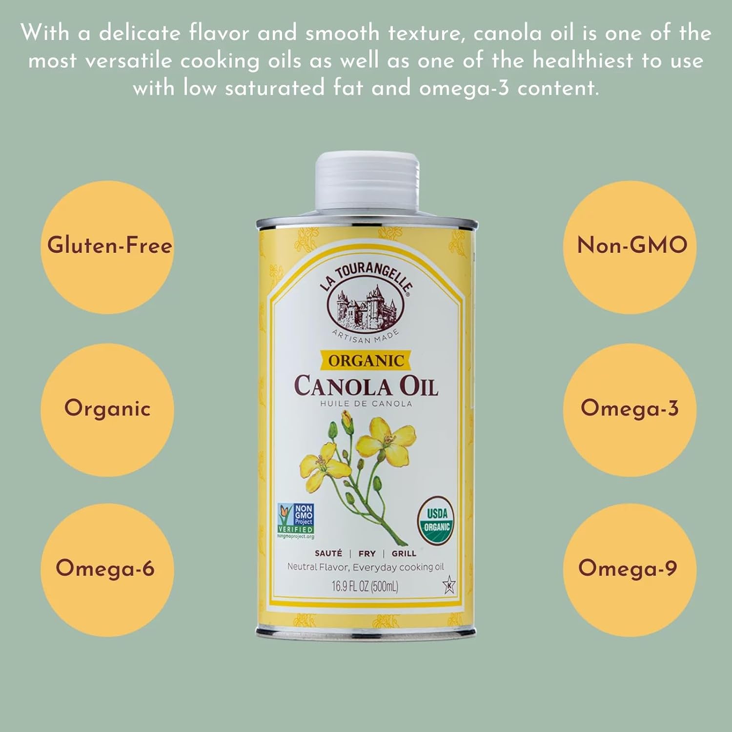 - Traditional and Simple: La Tourangelle Organic Canola Oil is a high quality addition to your everyday cooking. From frying to sautĂŠing, blended salad dressings or sauces, the possibilities are as limitless as your own creativity