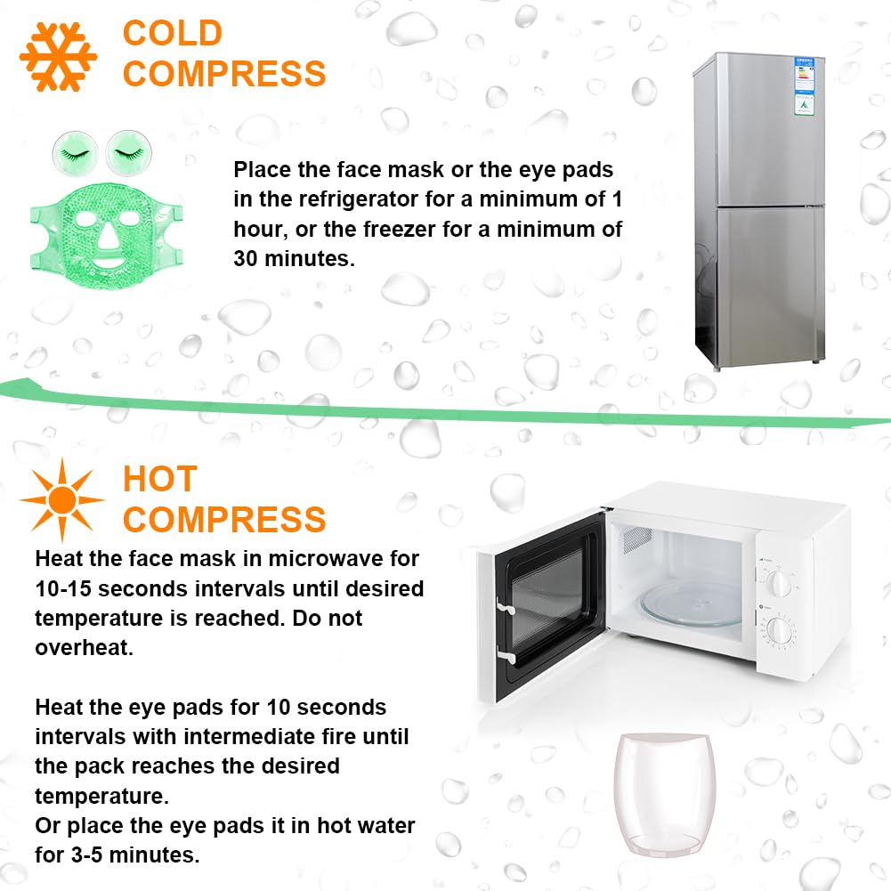 - ăConvenient to UseăSimply store the cooling eye masks in the freezer at -18â or lower temperature for at least 2 hours. For better effect,the best freezing time is 2-6 hours.heat the cooling face mask in microwave in 10-15 seconds intervals until desired temperature is achieved,the maximum heating time does not exceed 30 seconds.