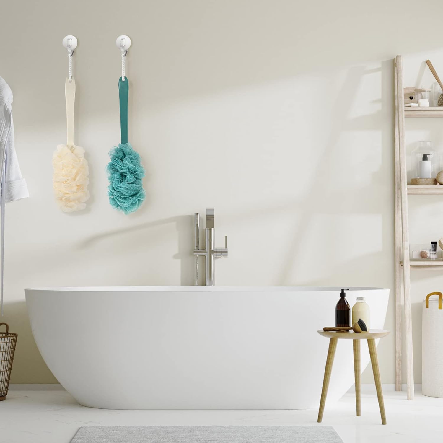 - 【long handled scrub brush for shower】 PIPUHA super soft exfoliating bath sponge is with long handle to strech out your back and soft loofah for men and women.