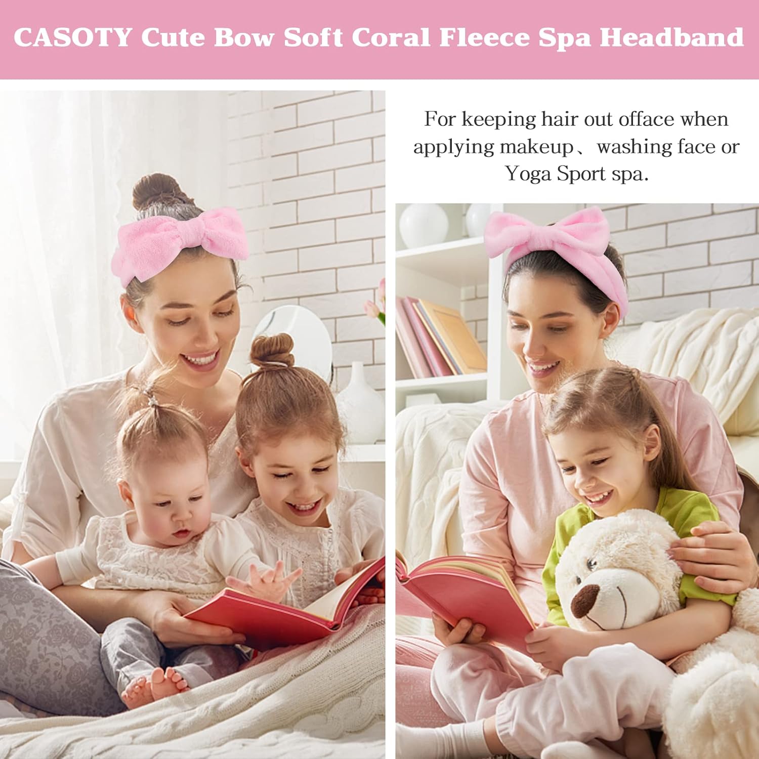 - Spa Headbands : The package contains 6 pcs pink bow spa headbands. The bow-knot shape on the top of the headband, makes you extraordinary sweet and cute
