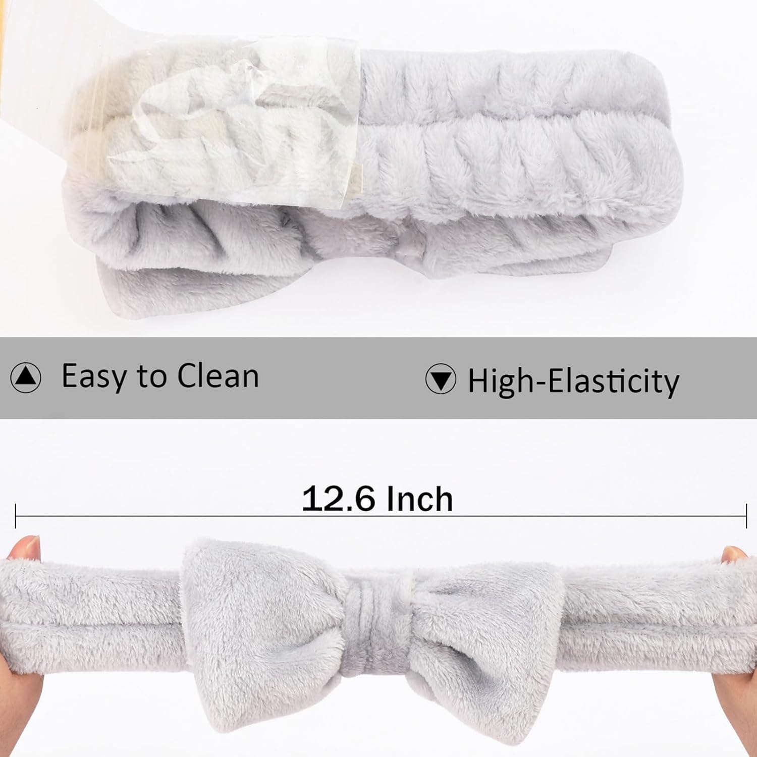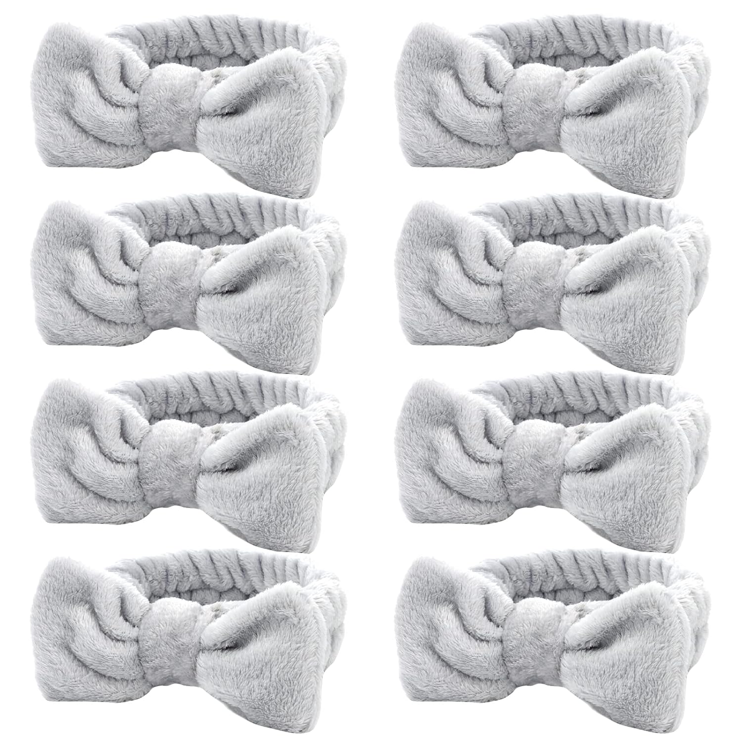 Ondder Spa Headband for Washing Face 8 Pack Gray Skincare Headbands for Women Girls Terry Cloth Cute Bow Head Bands