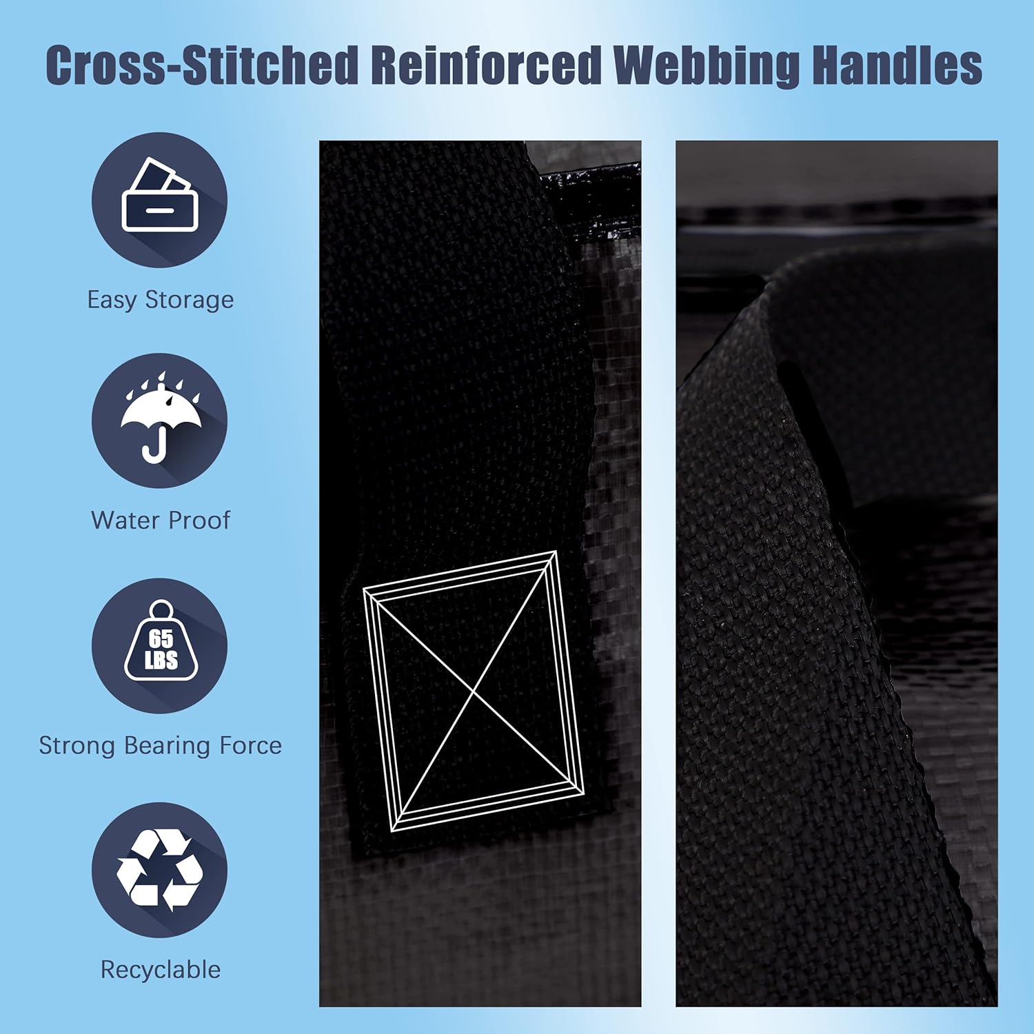 - EXTRA LARGE SIZE: 29" W X 13" H X 14" D - 86 Liters or 24 Gallon. They will safely hold up to 65 lbs. Strong moving storage bags in the market. These bags are made from durable woven 180 GSM coated polypropylene woven material. College Dorm Room Essentials for girls, guys.