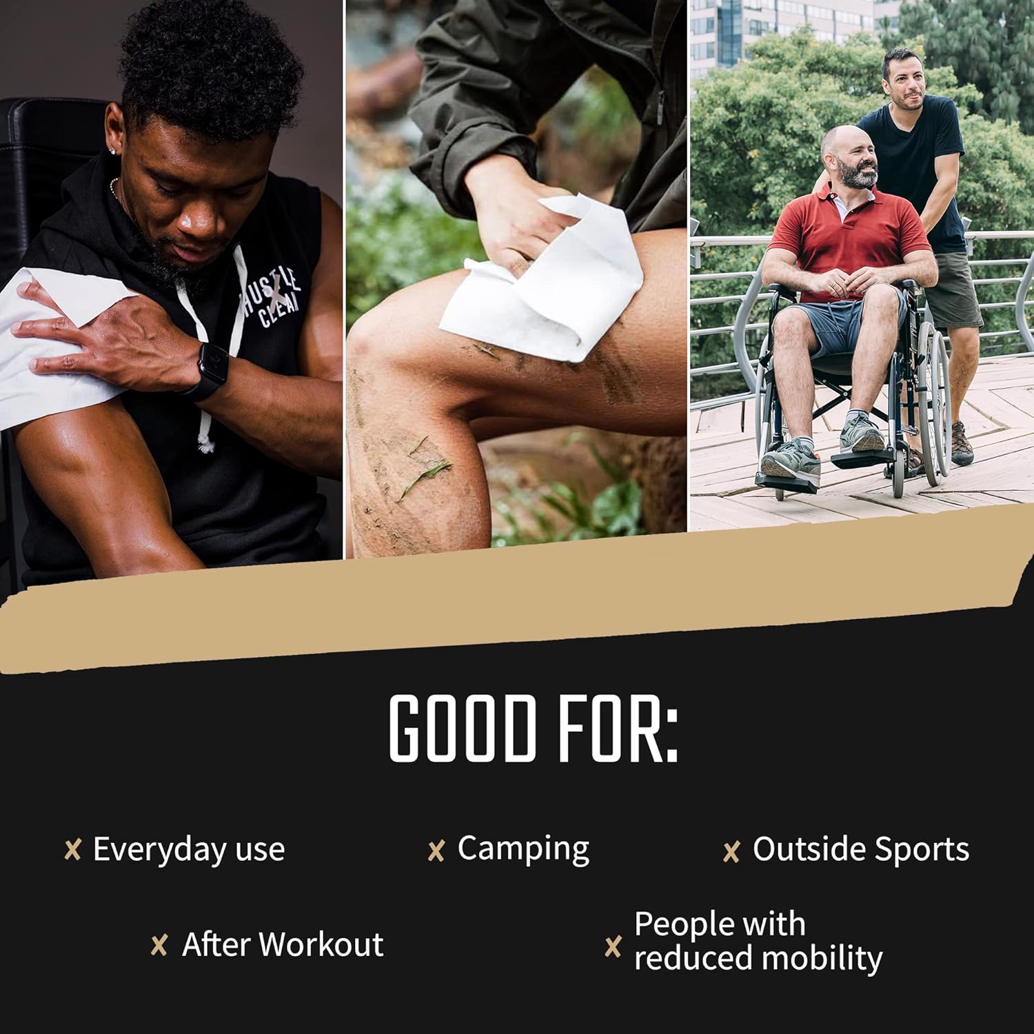 - Versatile Uses: Our disposable body wipes are great for athletes, campers, travelers, and people recovering from injuries or suffering with reduced mobility. Gentle enough for kids' skin, as our wipes contain ingredients safely used in baby care products.