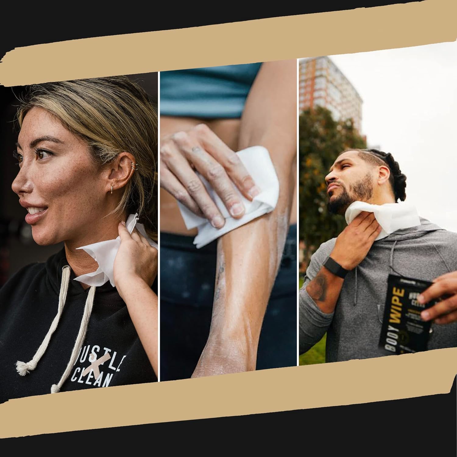 Hustle Clean Body Wipes 9''x8'', Disposable Bathing Wipes For Adults, No Rinse, With Aloe Vera & Vitamin E, Fresh Scent, 40 Individually Wrapped Wipes