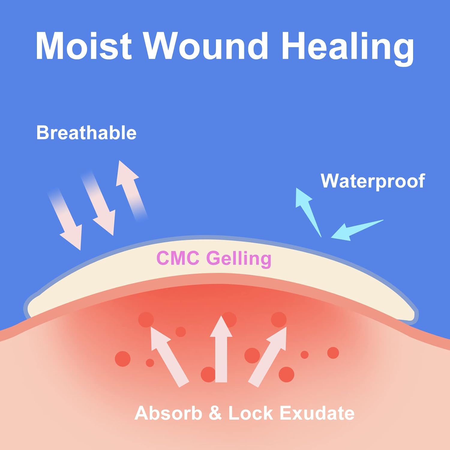 - 【Mosit Healing】- Normal bandages stick to the wound causing the wound to tear open when changing the bandage.The hydrocolloid gel bandages consists of CMC, when contacted with wound exudate, the large hydrocolloid dressing would produce a viscous gel to creat the moist environment for faster healing.