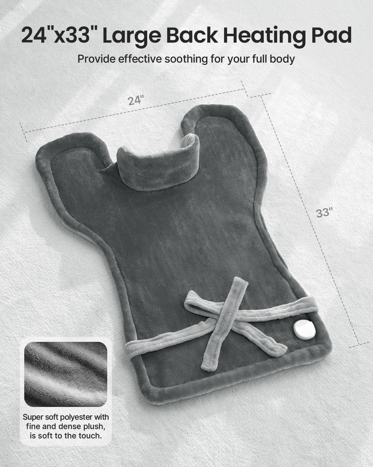 RENPHO Heating Pad for Back, Anniversary Relaxation Christmas Gifts for Women Men Wife, Neck and Shoulder Heat Pad for Pain Relief, Hsa Store Eligible Items, ETL Certified, 24"x33", Grey White