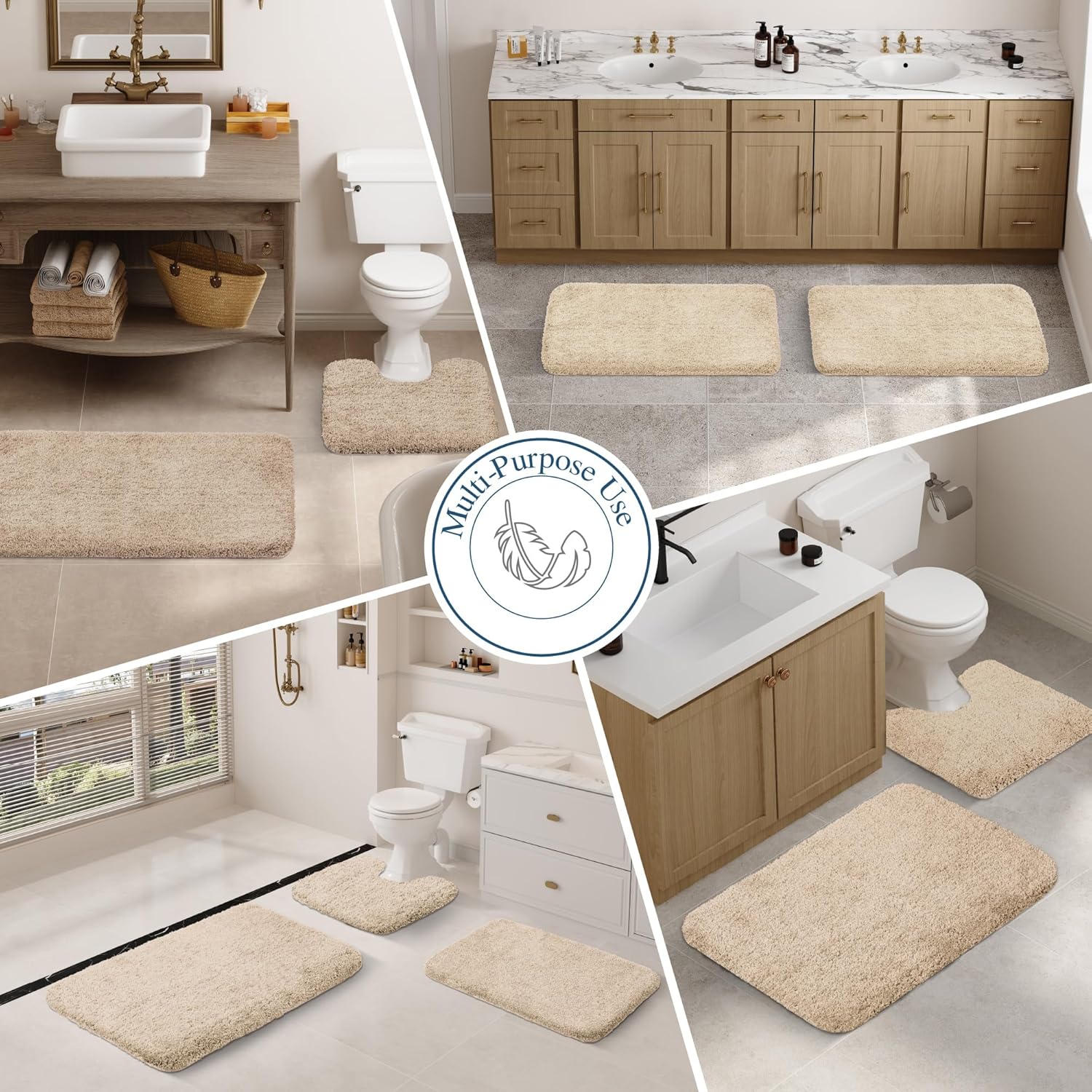 Walensee Large Bathroom Rug (24 x 48, Beige) Extra Soft and Absorbent Shaggy Mat Machine Washable Microfiber Bath Mat, Non Slip Bath Mat, Luxury Bathroom Floor Mats