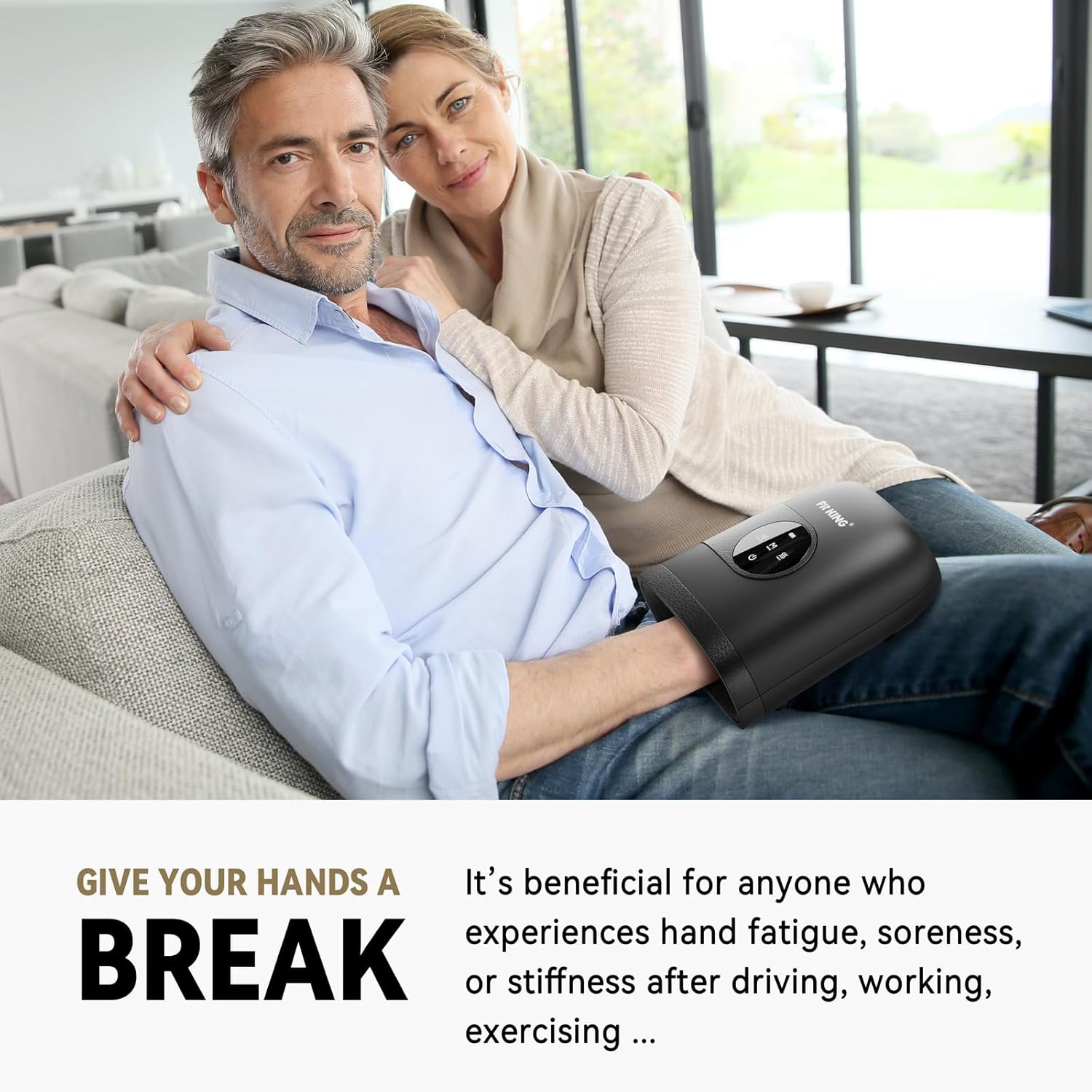 - HAND MASSAGE & PAIN RELIEF: People who engage in activities and jobs that put high pressure on the thumb joint, may notice swelling, stiffness and tenderness at the base of thumbs. FIT KING hand massager combines with sequential compression massage and heating therapy that simulates kneading shiatsu and squeezing on your whole hand and fingers to relax joints and relieve pain and stiffness, improve the circulation from fingers to wrists after long-term use.