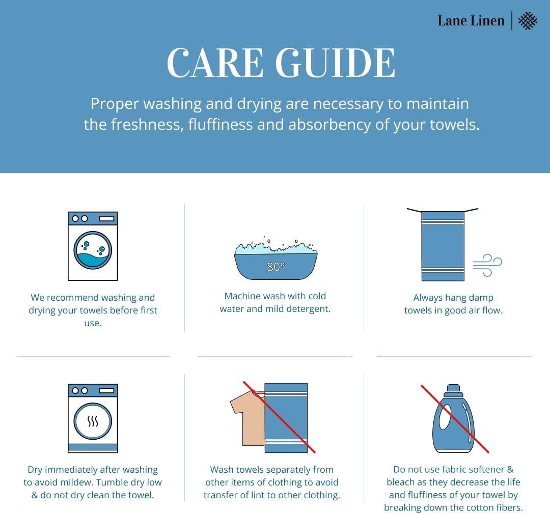 - Care Instructions : Due to the use of zero twist loops, our bathroom towels provides great softness. You may see some lint during first few uses due to the towels containing 100% cotton piles but should diminish after each washing. For best use, wash separately on first use. Always wash the towels separately to minimize lint.