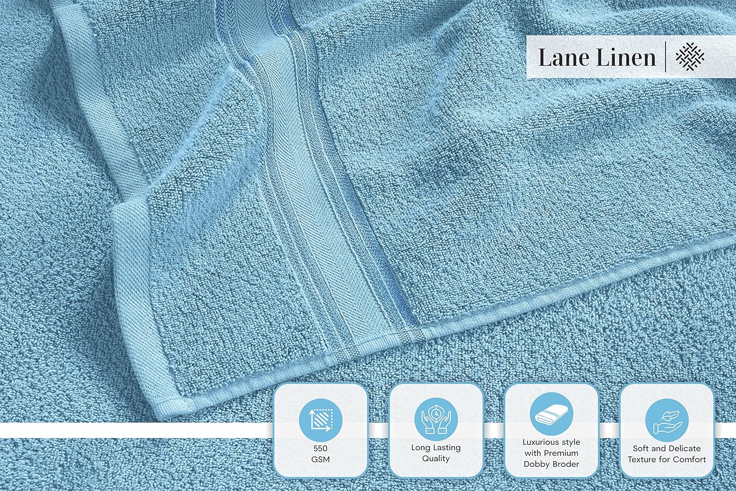 LANE LINEN Luxury Bath Towels Set - 3 Piece 100% Cotton Bathroom Towels, Quick Dry, Extra Aborbent, Super Soft Towels Set 1 Hand Towel, 1 Wash Cloths, 1 Bath Towel, Blue