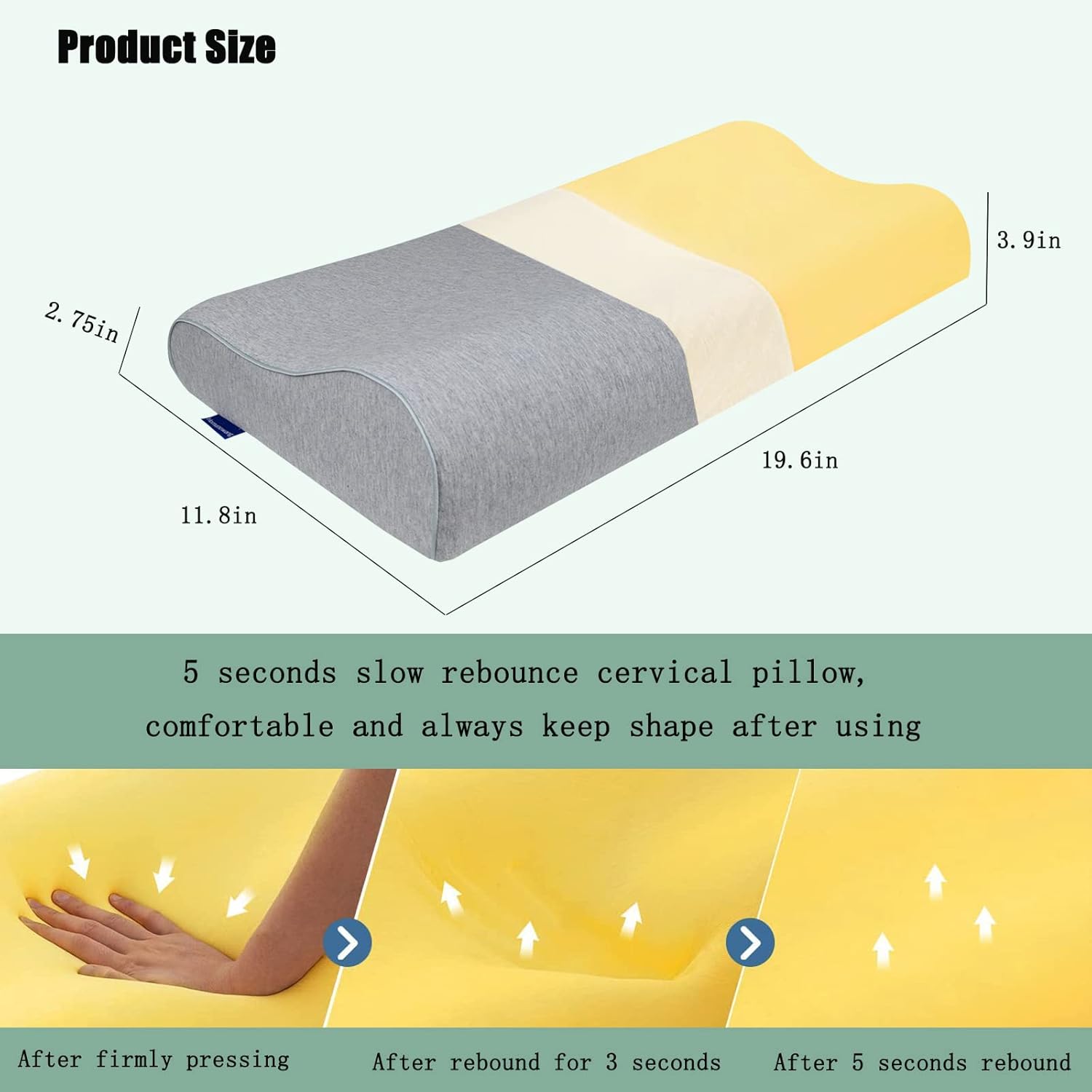 - 【Lightweight Small Pillow】: Dimension: 19.6*11.8*3.9/2.75in, Weight: 1.67lbs. This memory foam pillow also suits for teenagers who want a neck support when sleeping. There are two available neck support heights to support neck and head no matter back sleeping or side sleeping.